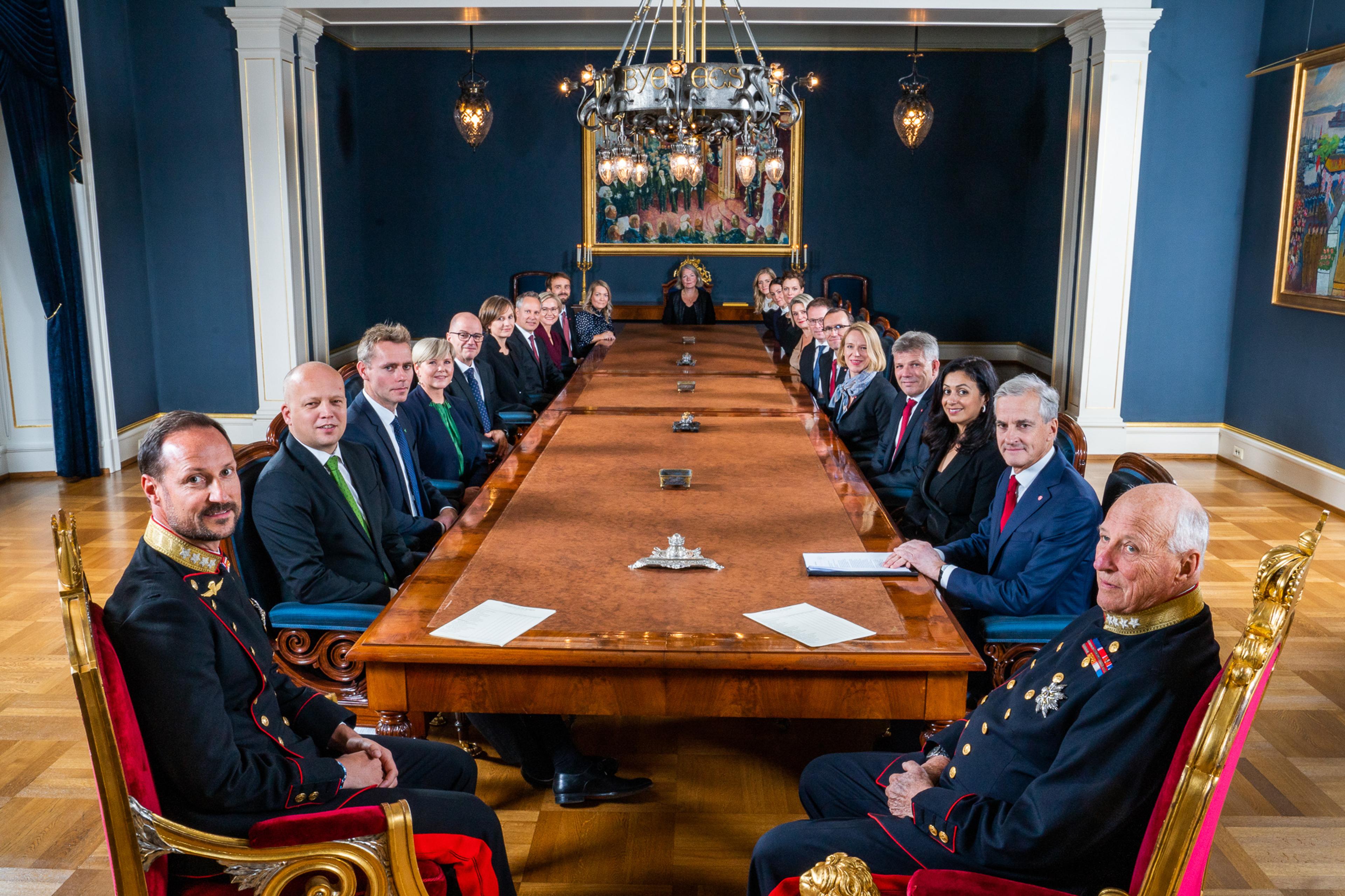 Hans Majestet Kongen utnemnde i statsråd i dag ny regjering og Jonas Gahr Støre til Noregs nye statsminister.