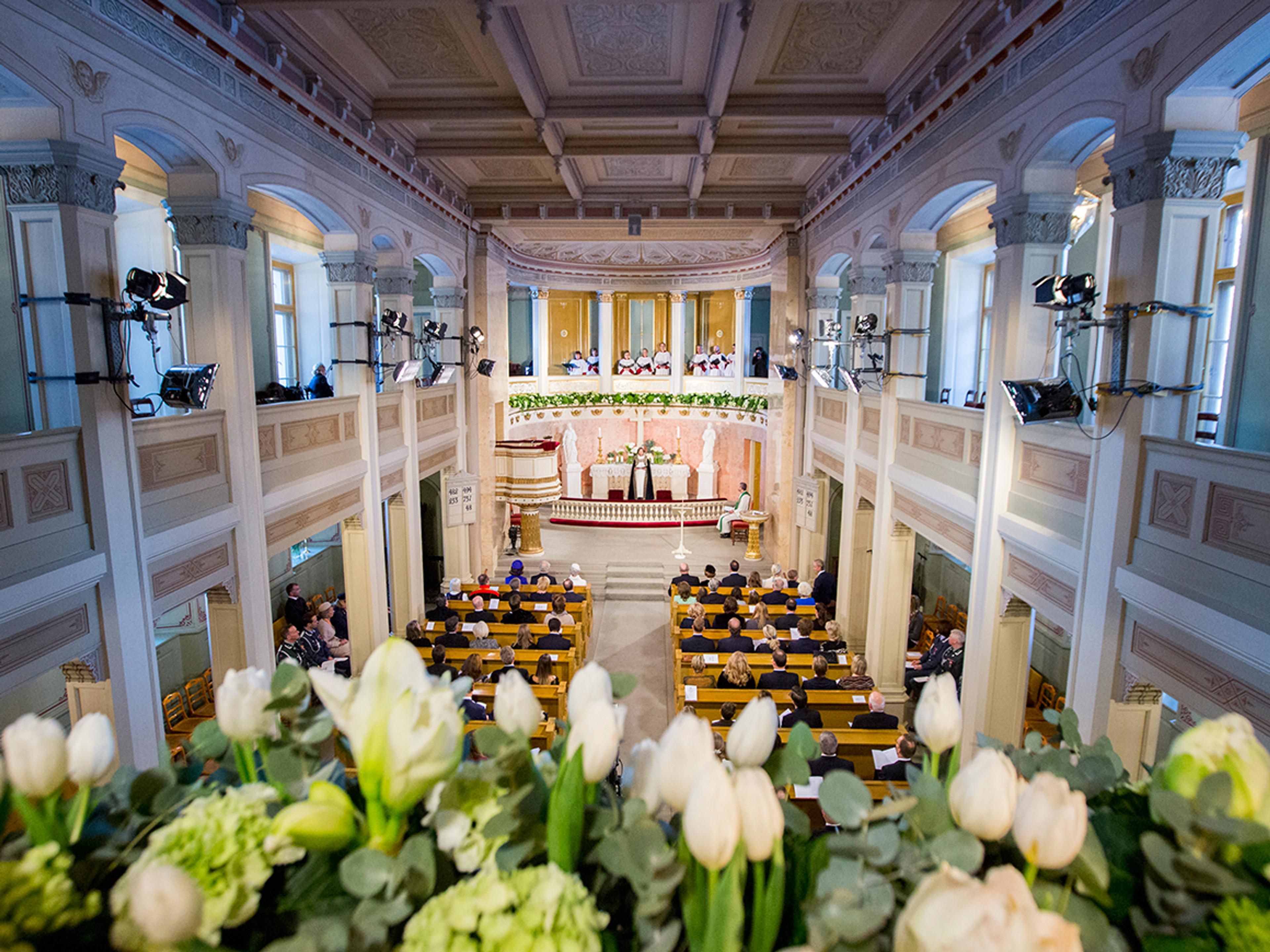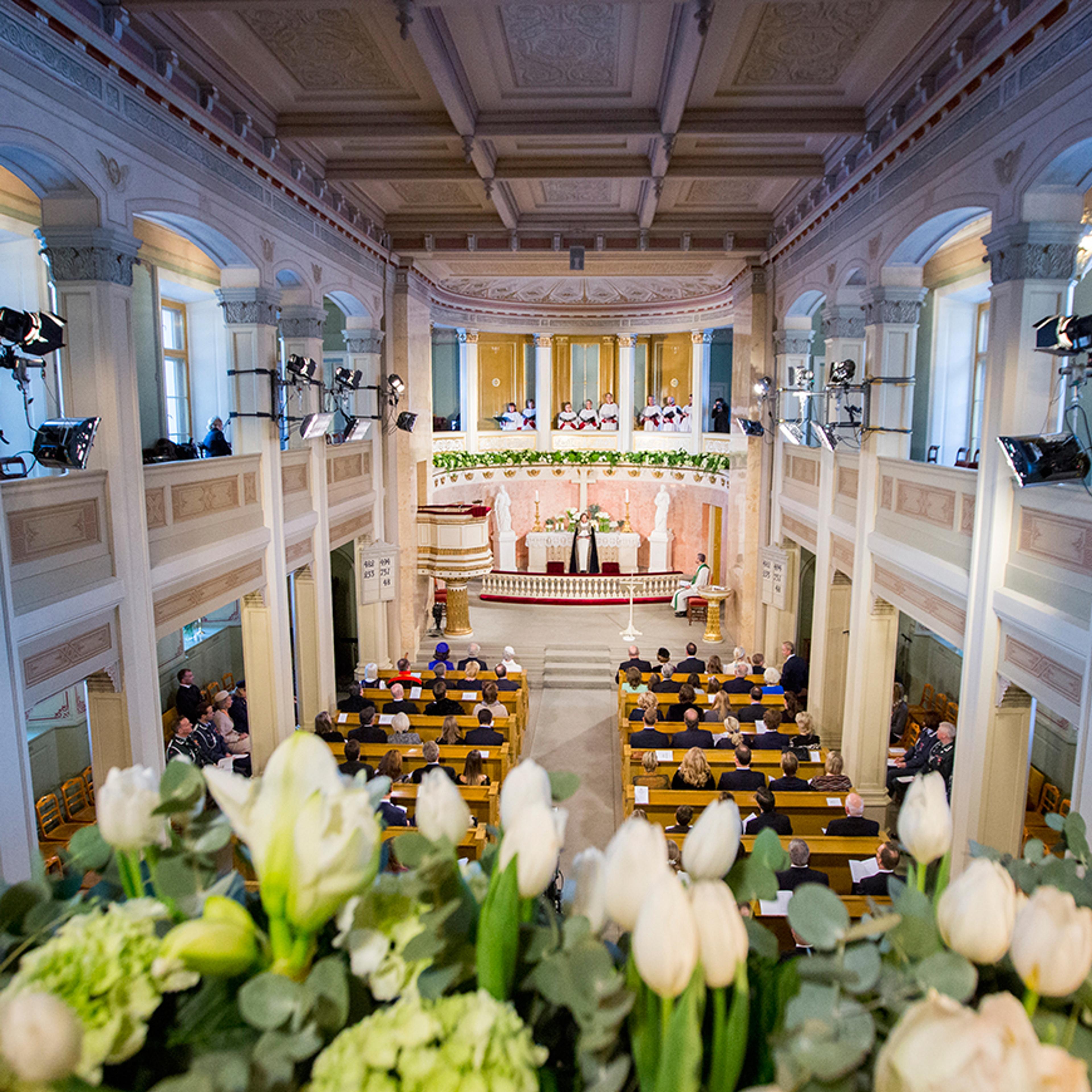 Foredragene finner sted i Slottskapellet - det vakre kirkerommet som danner rammen om viktige hendelser i Kongefamiliens liv. Dåp og konfirmasjon holdes her - og her lå Kong Haakon VII og Kong Olav V på lit de parade mens de frammøtte tok et siste farvel.