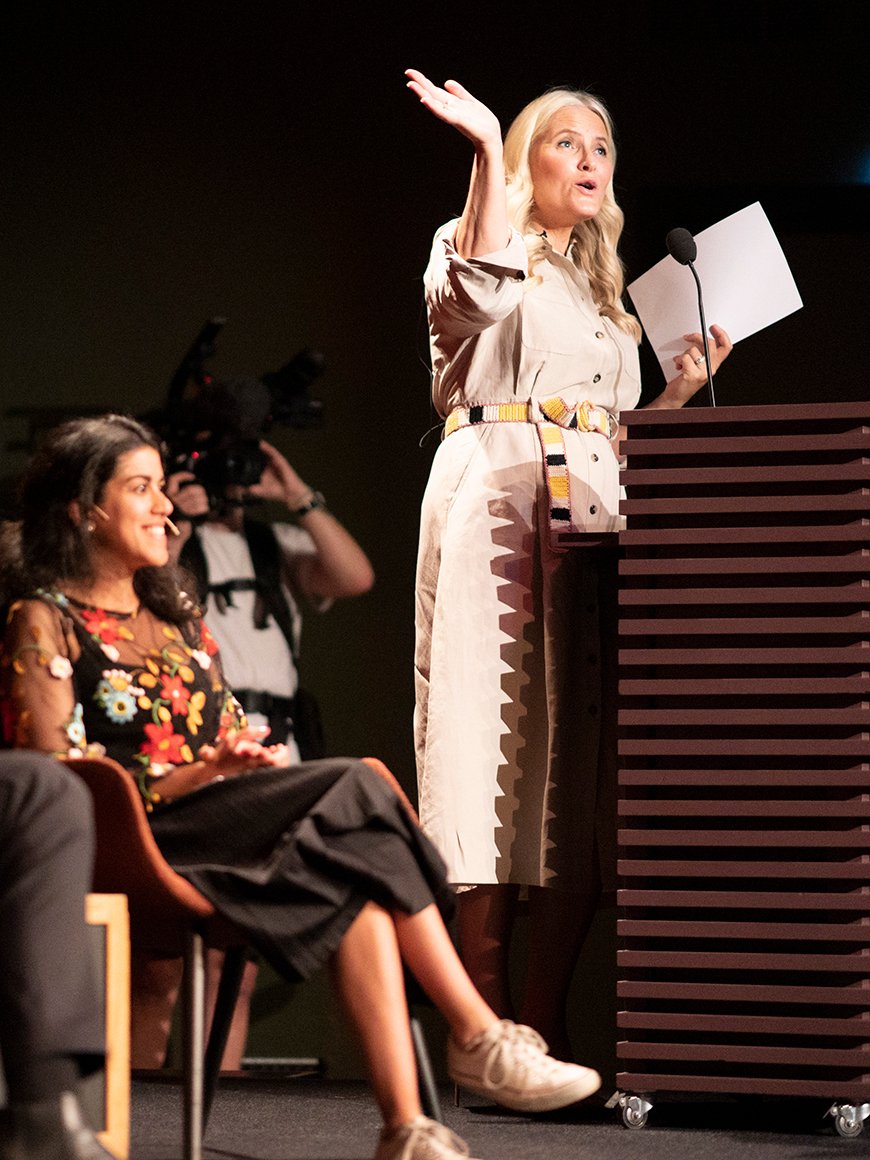 – På hver deres måte skaper dere tekster som berører og som endrer oss, sa Kronprinsesse Mette-Marit i sin hilsen. – Det dere skriver er med på å skape og forme et nytt Norge, et Norge av i dag. Og det er et Norge som er litt annerledes og mye mer mangfoldig enn da Kronprinsen og jeg var på deres alder.