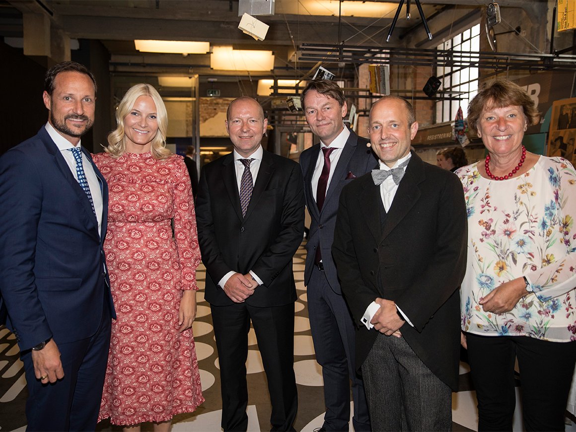 Sjefredaktør og administrerende direktør Mads Yngve Storvik og styreleder Jon Espen Lohne tok i mot da Deres Kongelige Høyheter Kronprinsregenten og Kronprinsessen ankom Norsk design- og arkitektursenter (DOGA) sammen med Oslos ordfører, Marianne Borgen.