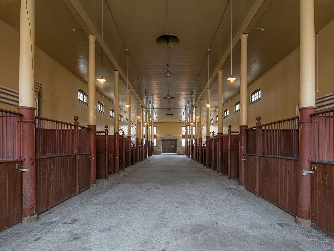 Stallbygningen ble oppført mellom 1845 og 1848 etter tegninger av slottsarkitekt H.D.F. Linstow, og utvidet av Kong Haakon og Dronning Maud i 1911. Tradisjonen med kongelig hestehold hadde Dronning Maud med seg fra England, og stallen ble ombygget etter forbildet The Royal Mews, det kongelige stallanlegget tilknyttet Buckingham Palace. Det utvidede stallanlegget rommet en rekke nye funksjoner som ridehus med eget tilskuergalleri og musikktribune, smie og sykestall.