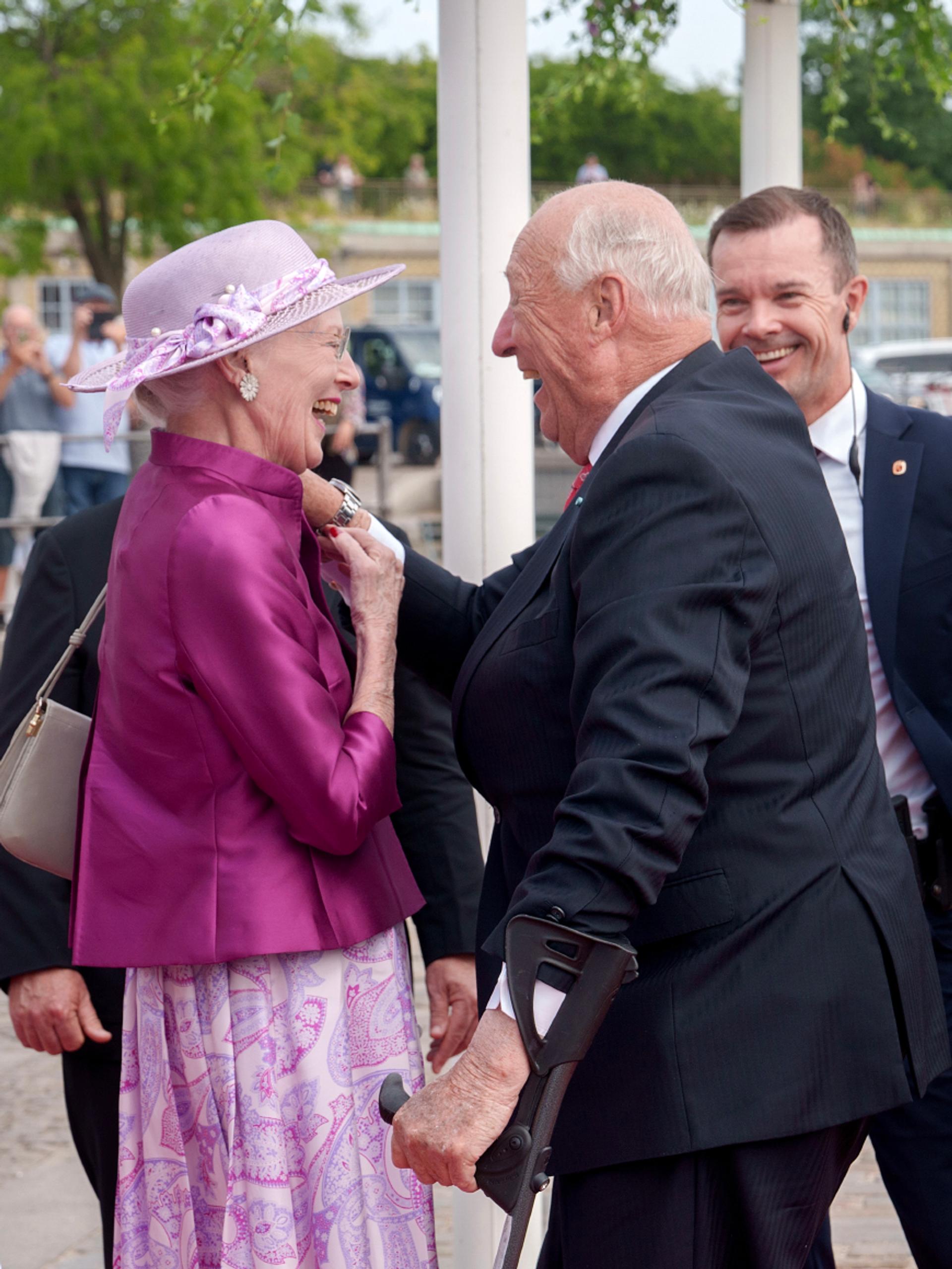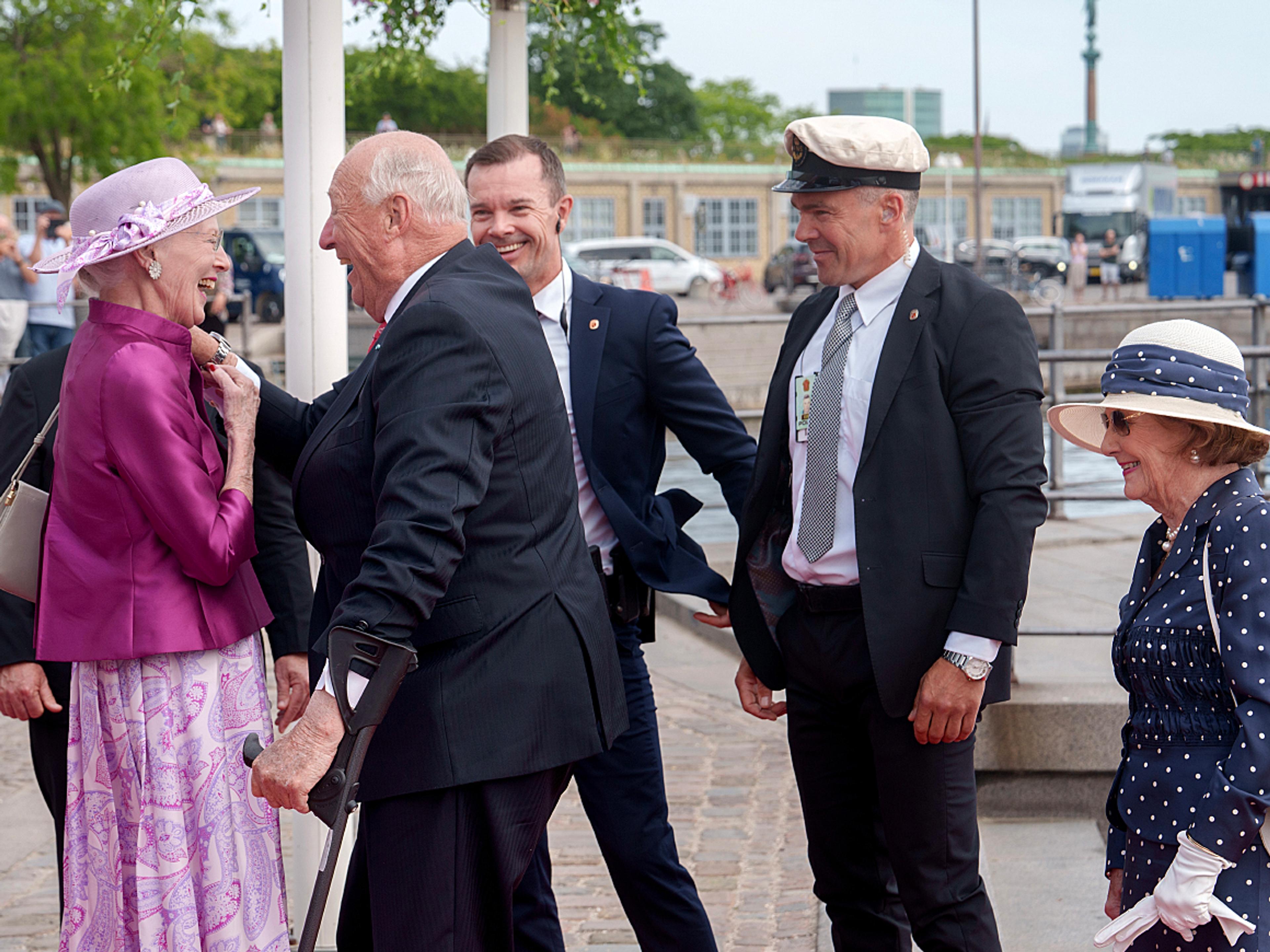 Besøket markerer de historiske båndene og det nære naboforholdet mellom Norge og Danmark og mellom de to kongehusene. Ved Nordre Tollbod tok Dronning Margrethe Kongeparet varmt imot.