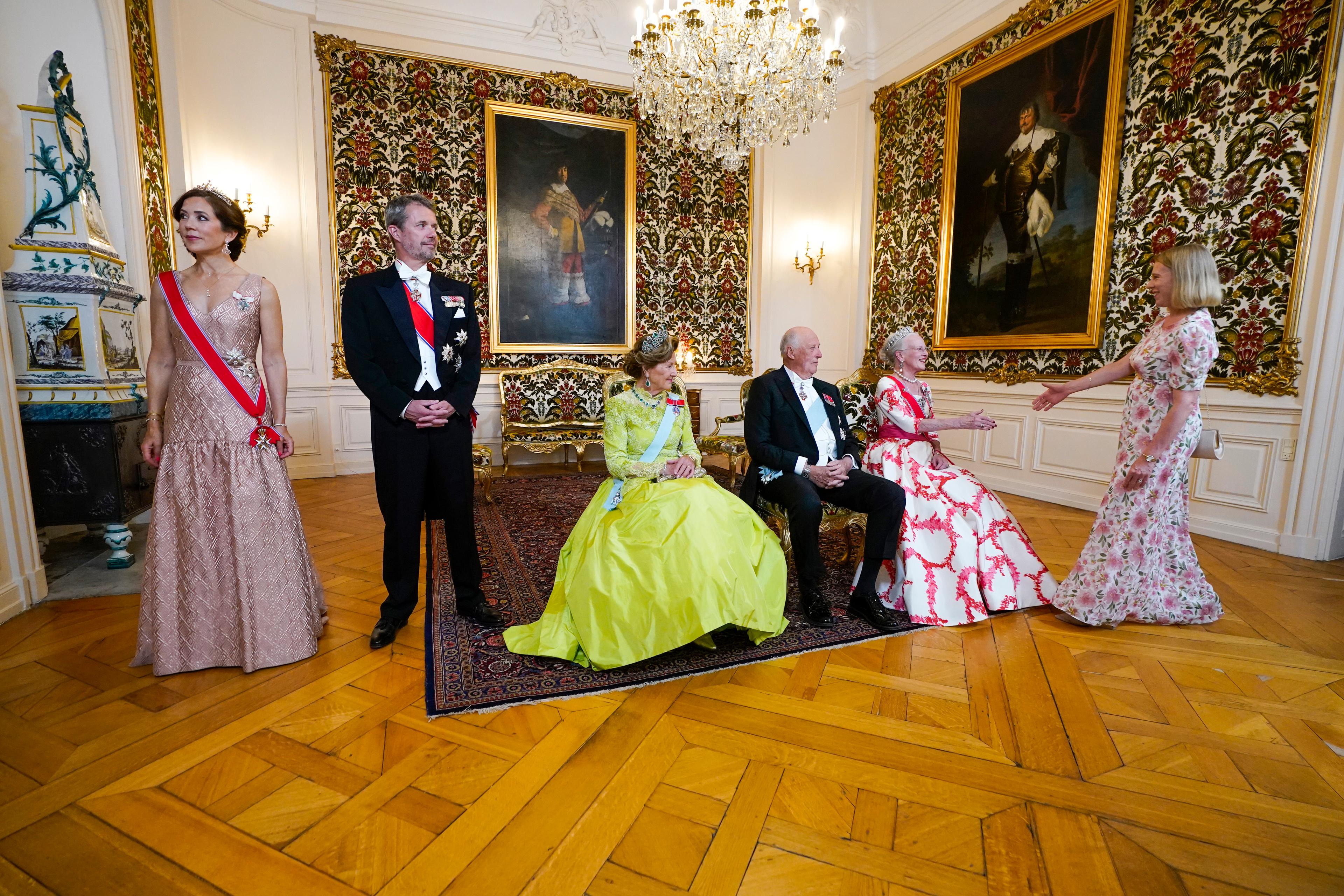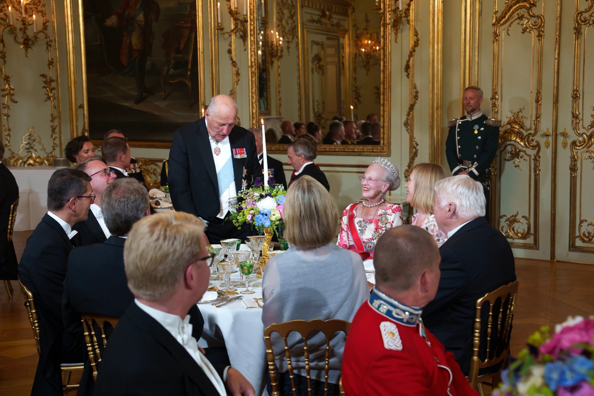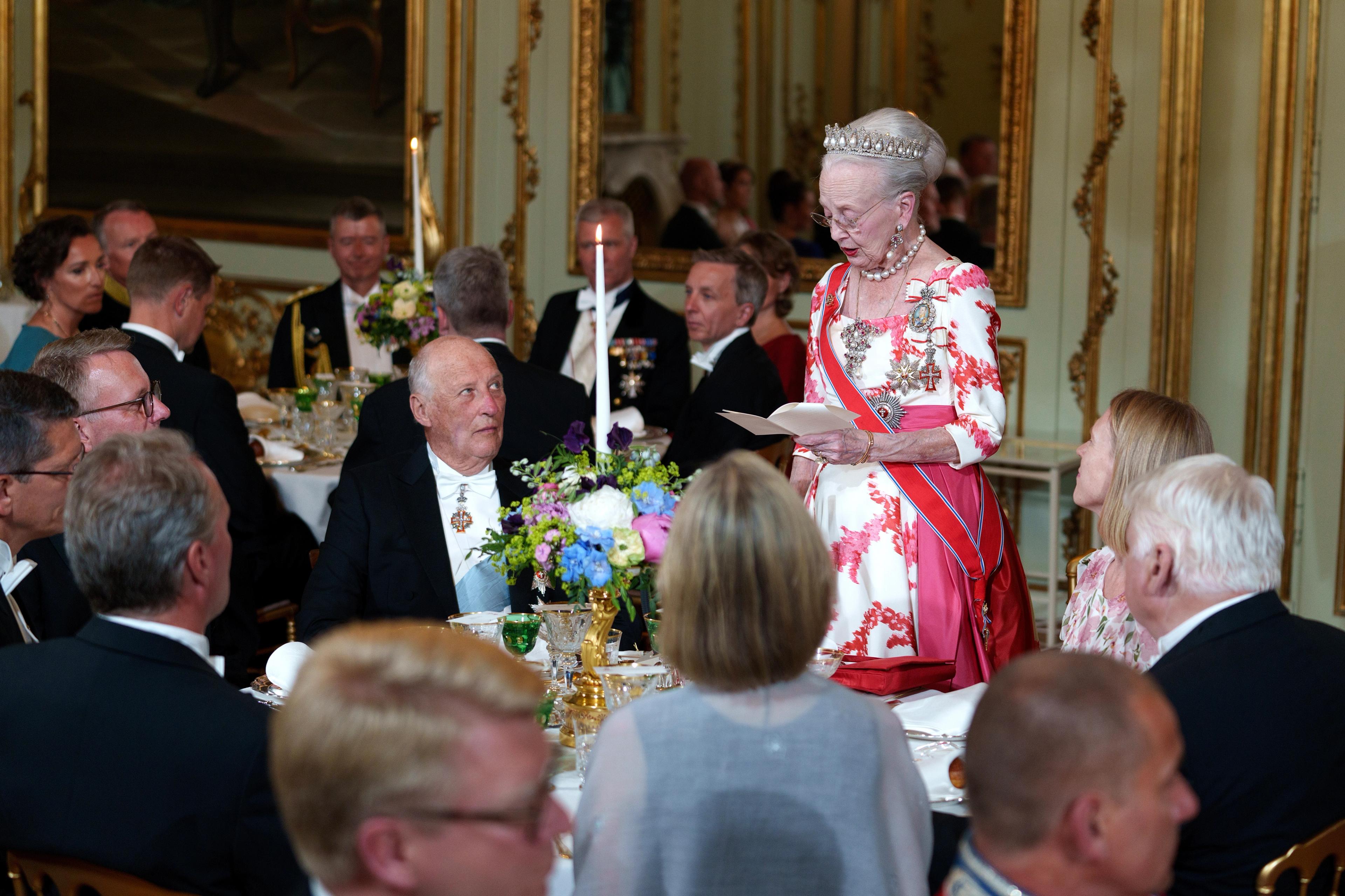 I kveld var Kongeparet Dronning Margrethes gjester under festmiddag på Amalienborg slott.