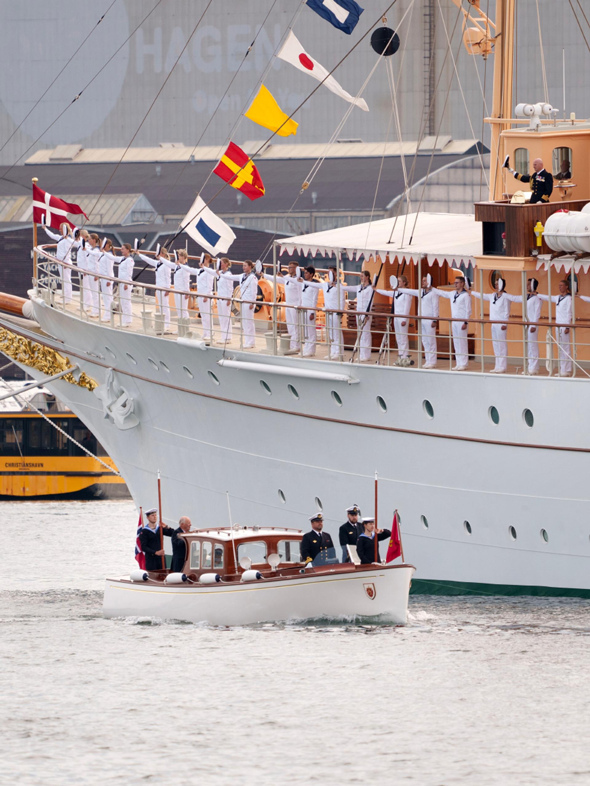 Etter middagen, vil Kongeparet og Deres Kongelige Høyheter Kronprins Frederik og Kronprinsesse Mary gå om bord i henholdsvis Kongeskipet Norge og Kongeskipet Dannebrog og sette kursen mot Århus der programmet fortsetter i morgen.