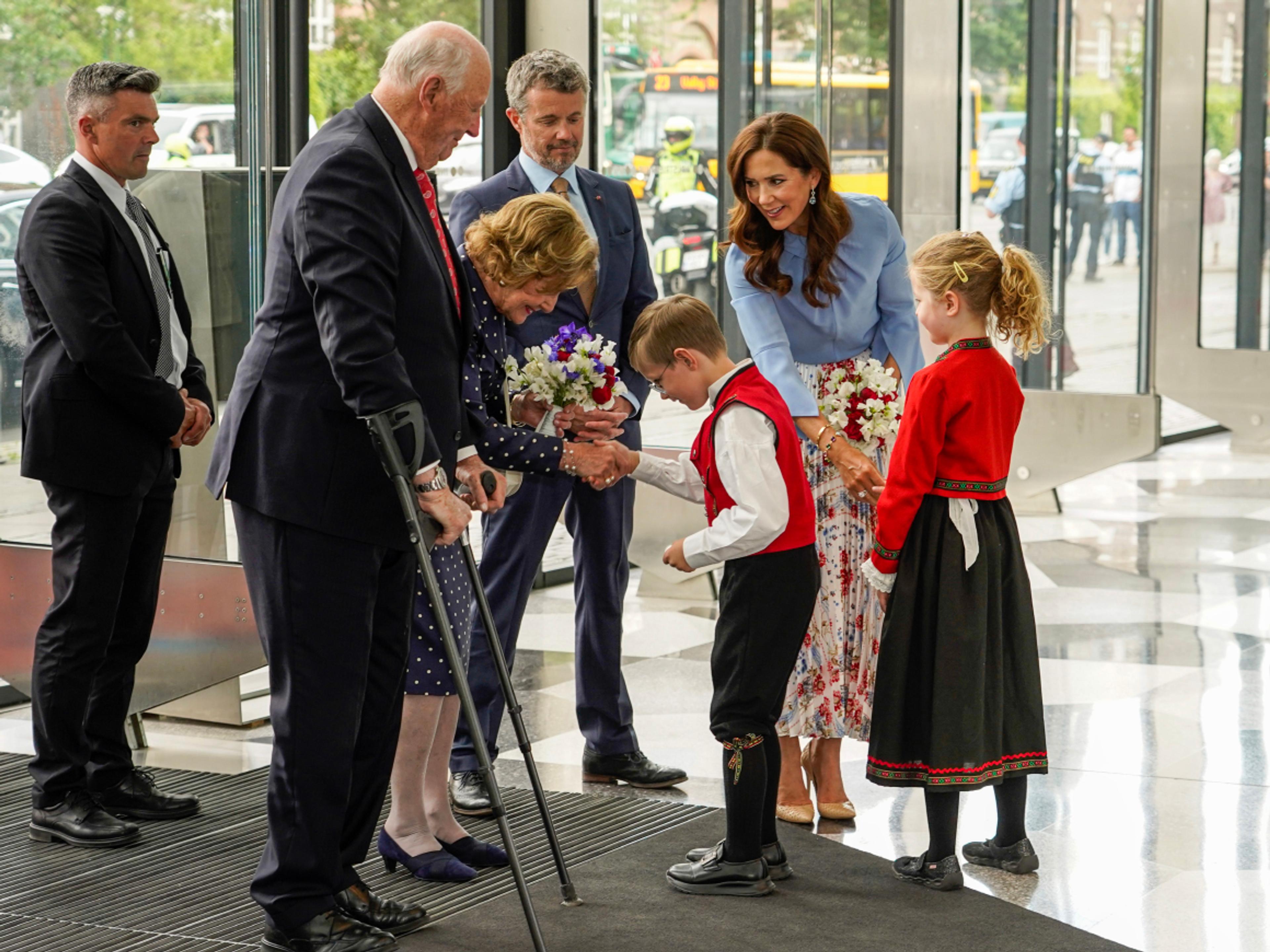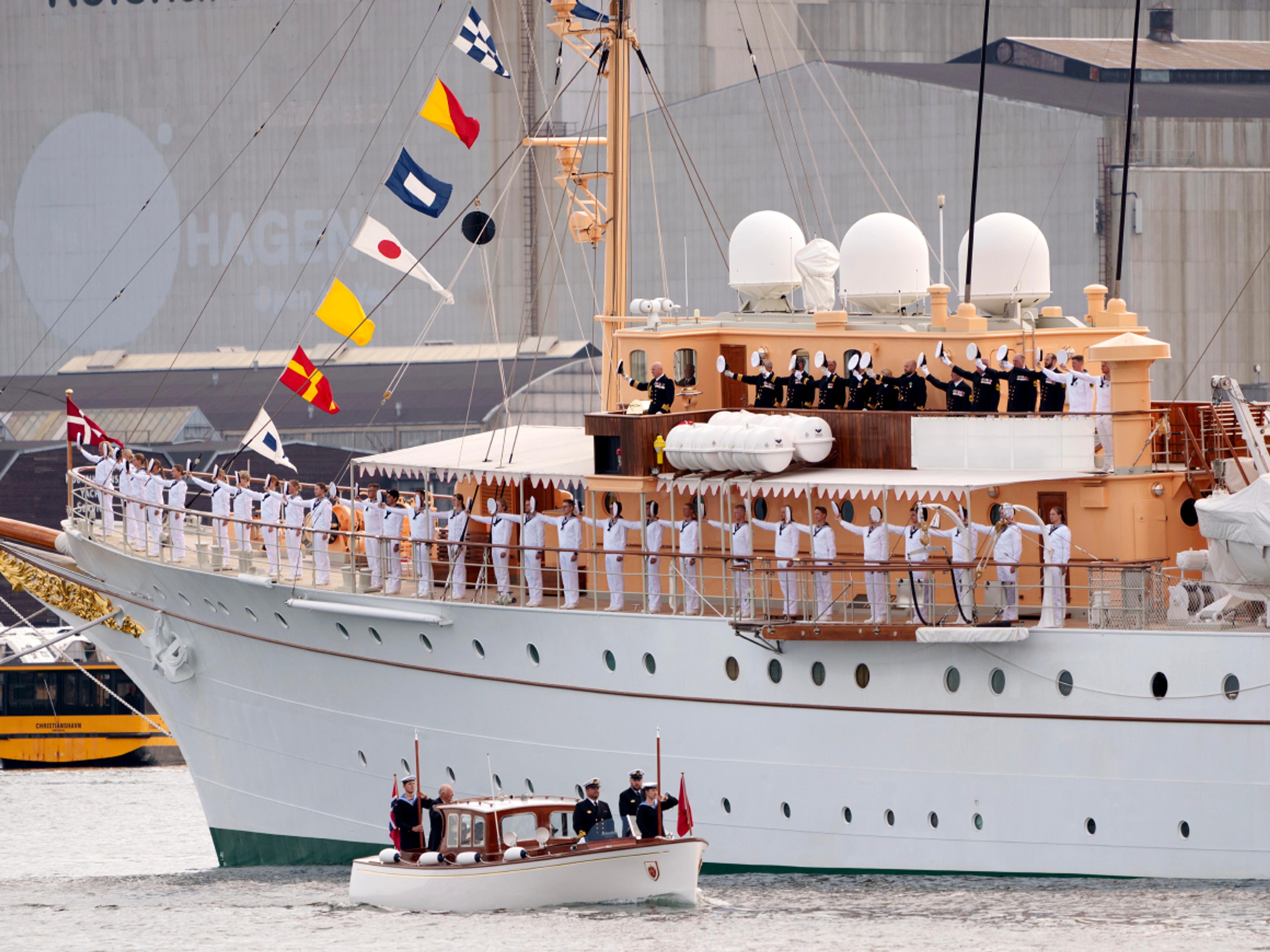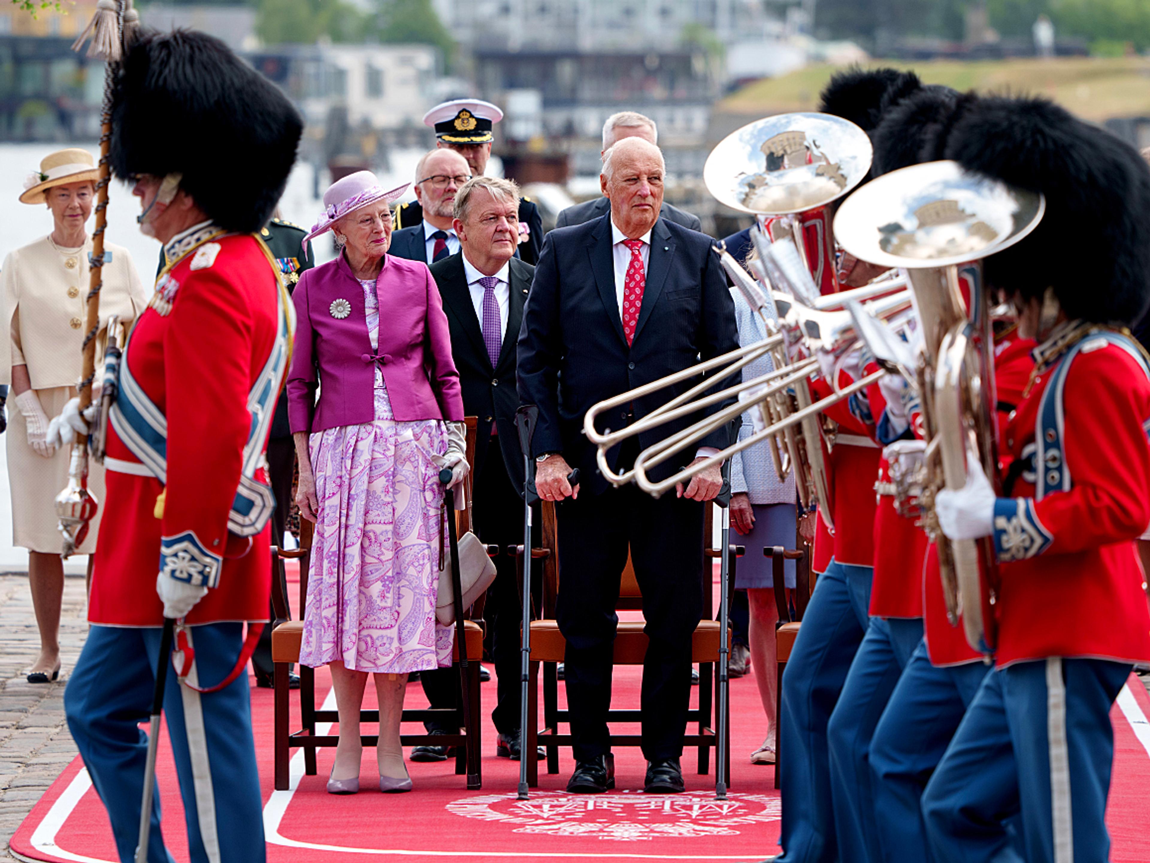 I formiddag gikk Deres Majesteter Kong Harald og Dronning Sonja i land i København. Der ønsket Dronning Margrethe II Kongeparet varmt velkommen på offisielt besøk til Danmark.