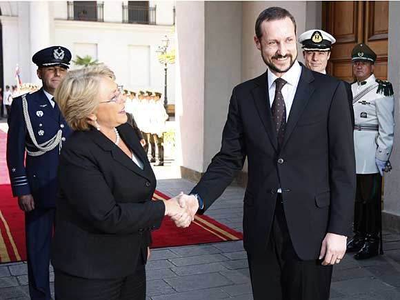 Etter kransnedleggelsen reiste Kronprinsen til La Moneda for å ha samtaler med Chiles president, Michelle Bachelet. President Bachelet er utdannet lege og har vært Chiles president siden 2006.