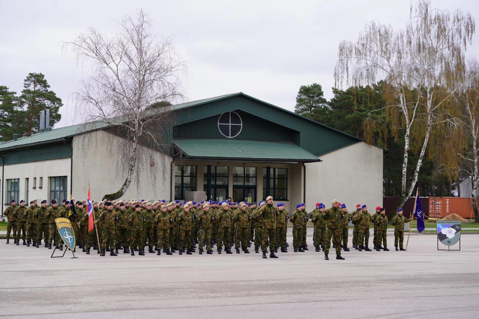 4. april er også dagen som markerer 75 år med forsvarsalliansen NATO. Dette ble markert med oppstilling av de norske soldatene i leiren. Kronprinsen inspiserte oppstillingen og NATO-hymnen ble spilt.