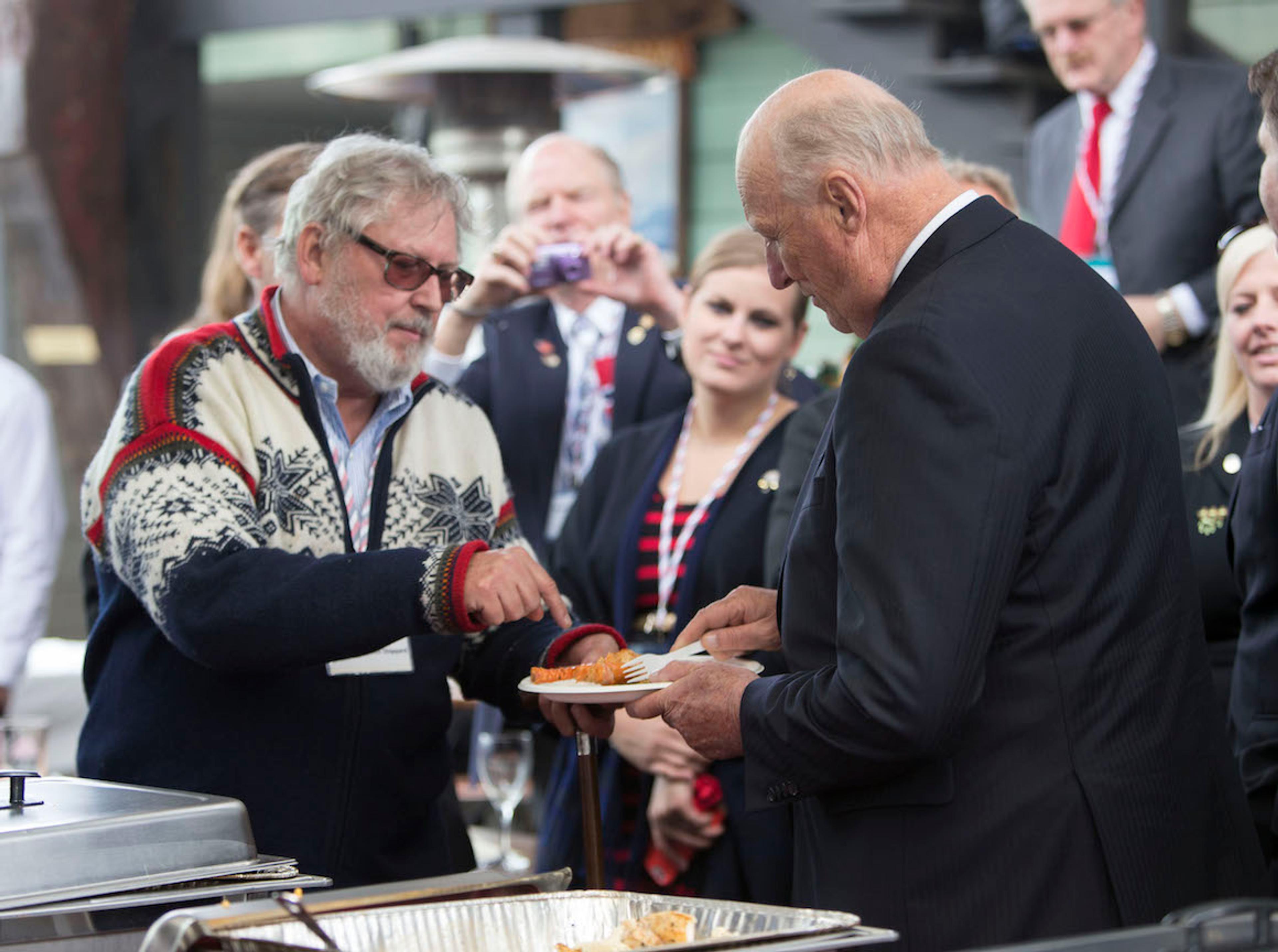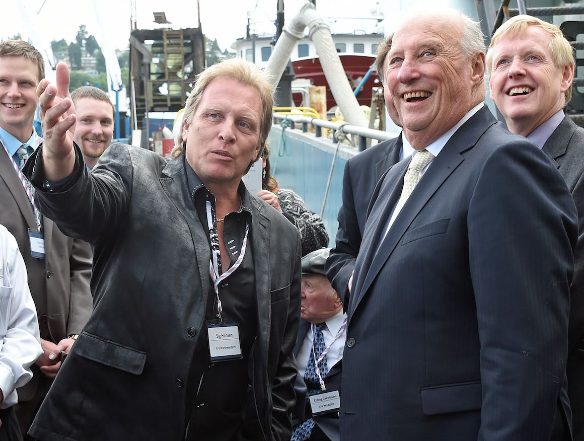 Kongen ble tatt i mot av Doug Dixon, som viste Kong Harald omkring og fortalte om verftets historie. Under omvisningen fikk Kongen møte flere medlemmer av det levende norsk-amerikanske miljøet i området. Blant dem var både redere, fiskere og krabbefiskere - blant annet Sig Hansen fra Tv-serien Deadliest Catch.