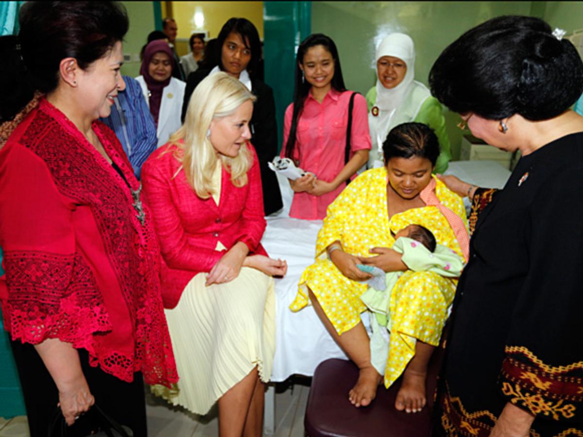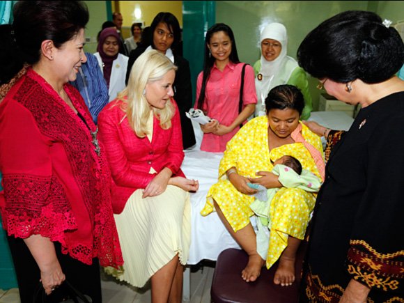 Kronprinsesse Mette-Marit fikk en omvisning på sykehuset i dag, i følge med blant annet helseminister A. Nafisiah Mboi og den indonesiske skuespilleren og aidsaktivisten Ibu Memey.