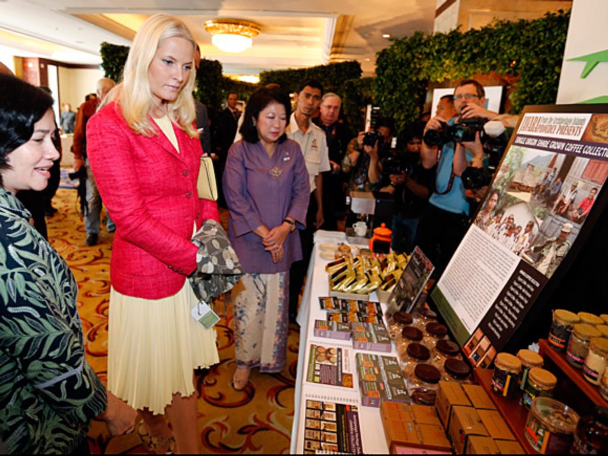 Arbeidet ledes av minister Kuntoro Mangkusubroto, og i dag besøkte Kronprinsparet et seminar med tilhørende utstilling som forteller om situasjonen og framdriften i prosjektet. Kronprinsen og Kronprinsessen overvar signeringen av en deklarasjon om bærekraftig skogbruk, noe Kronprins Haakon berømmet i talen sin like etterpå: