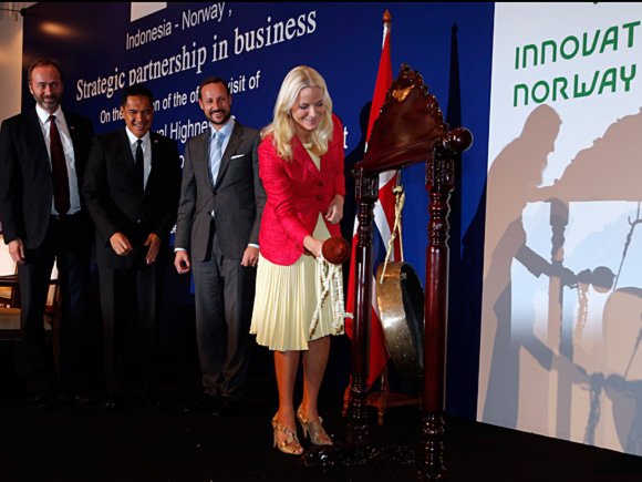 En stor næringslivsdelegasjon ledsager Deres Kongelige Høyheter Kronprinsen og Kronprinsessen under besøket, og i dag var Kronprinsparet til stede ved åpningsforedraget under et norsk-indonesisk næringslivsseminar. Kronprinsesse Mette-Marit åpnet seminaret, og understreket den store interessen mange norske bedrifter viser for det indonesiske markedet: