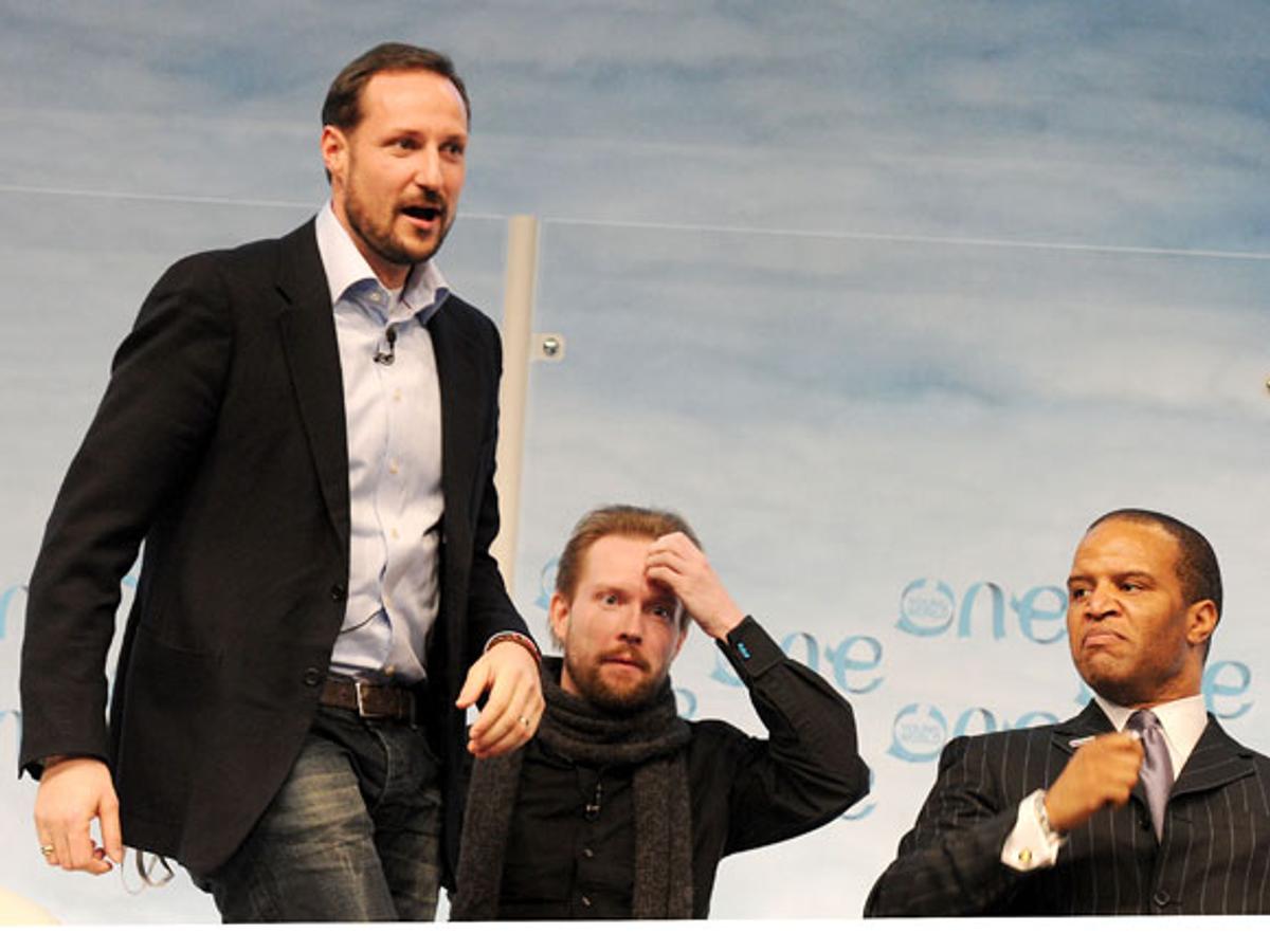 På scenen i Excel-senteret i London hadde Kronprinsen med seg den amerikanske fattigdomsbekjemperen John Hope Bryant og filosofiprofessoren Pekka Himanen. I 2006 etablerte de tre initiativet Global Dignity.