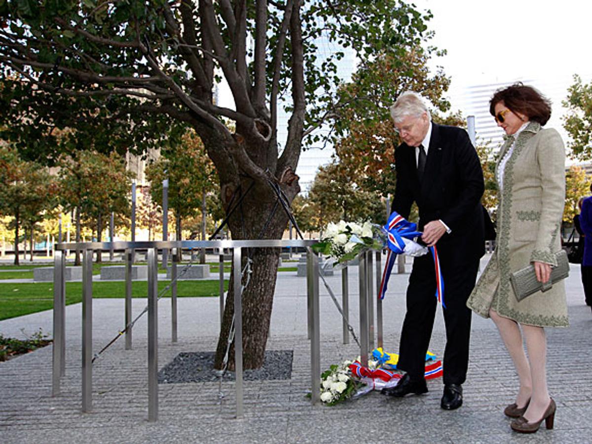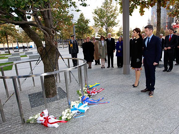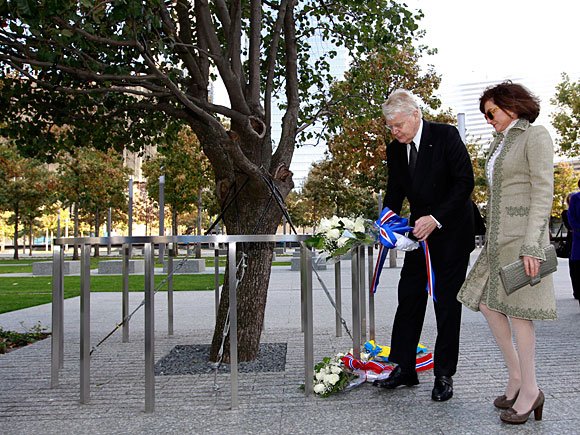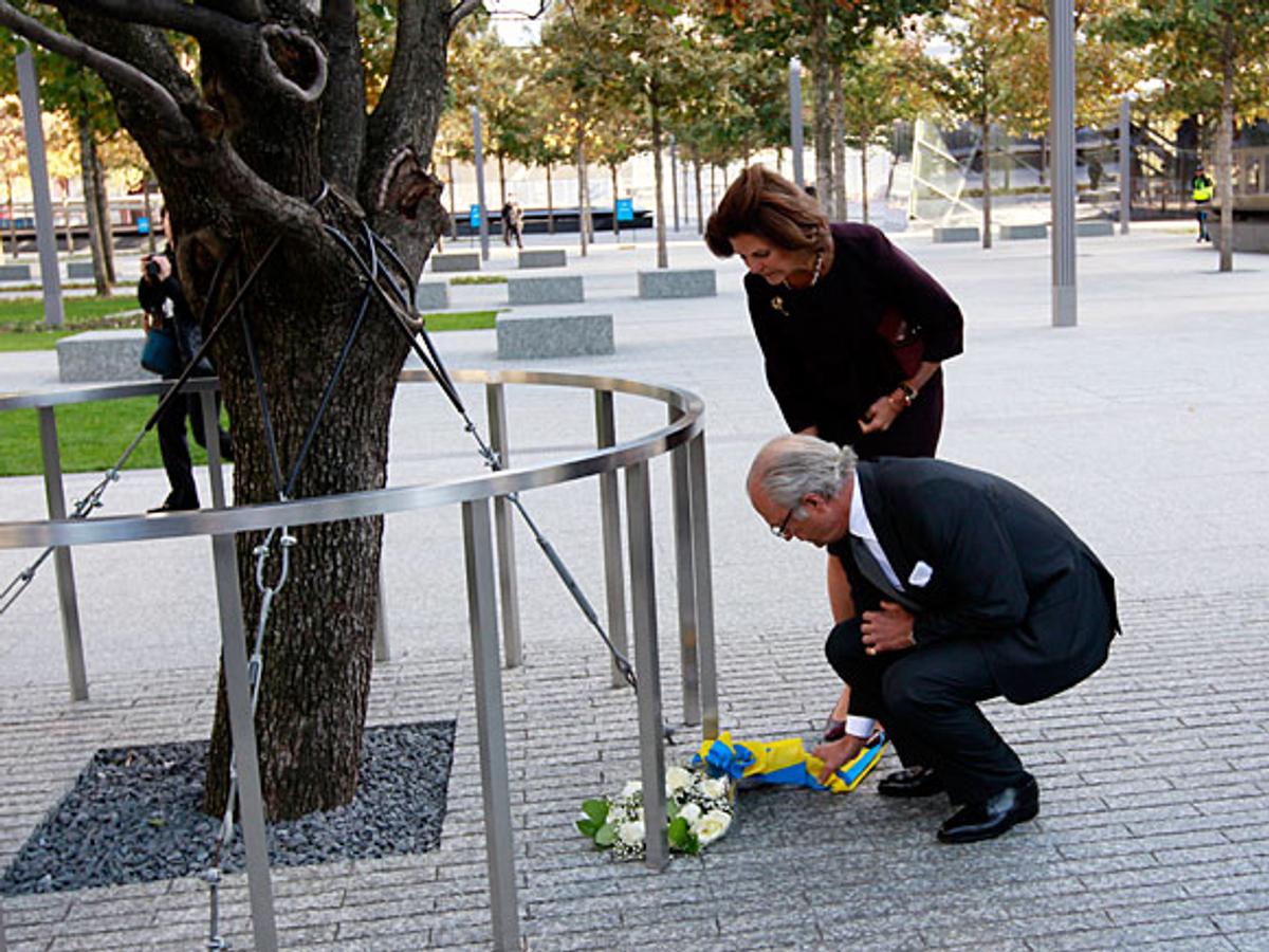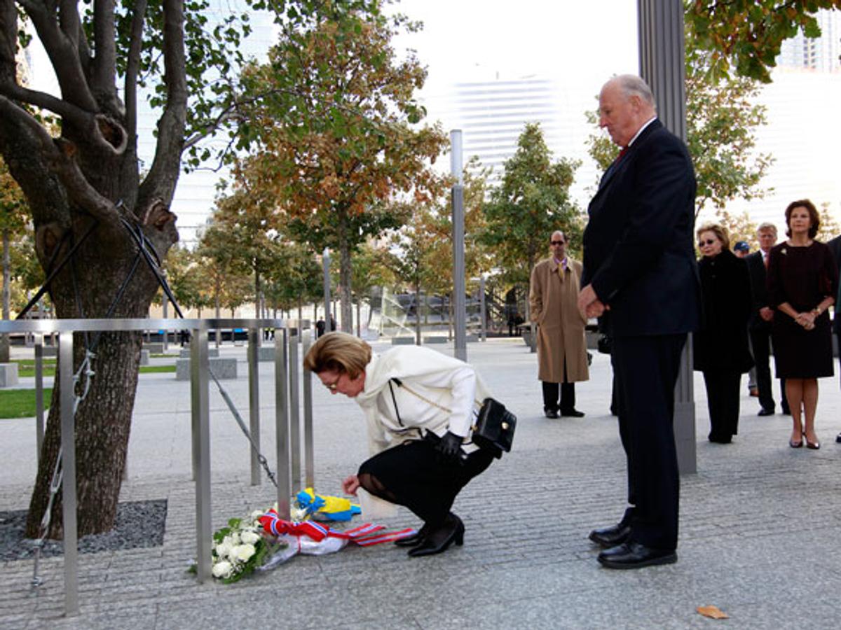 Før overrekkelsen på MoMA besøkte Kongen og Dronningen Ground Zero, åstedet for terroraksjonen som ødela World Trade Center 11. september 2001.