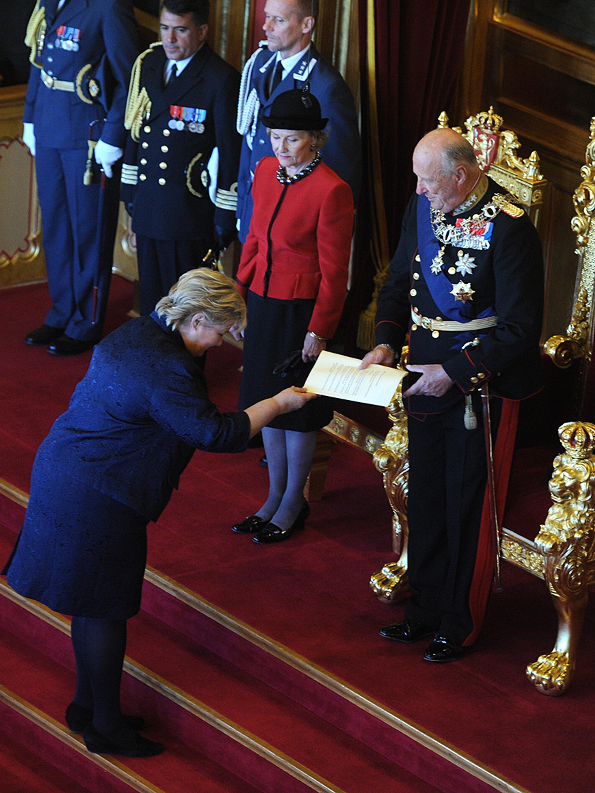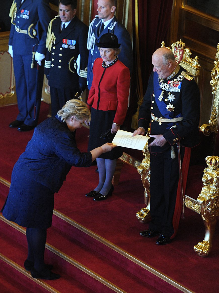 "Jeg hilser Stortinget velkommen til ansvarsfullt arbeid og ønsker at det må bli til gagn for fedrelandet." Med desse tradisjonsrike orda innleidde Hans Majestet i dag Trontalen og den høgtidelege opninga av Noregs 159. storting.