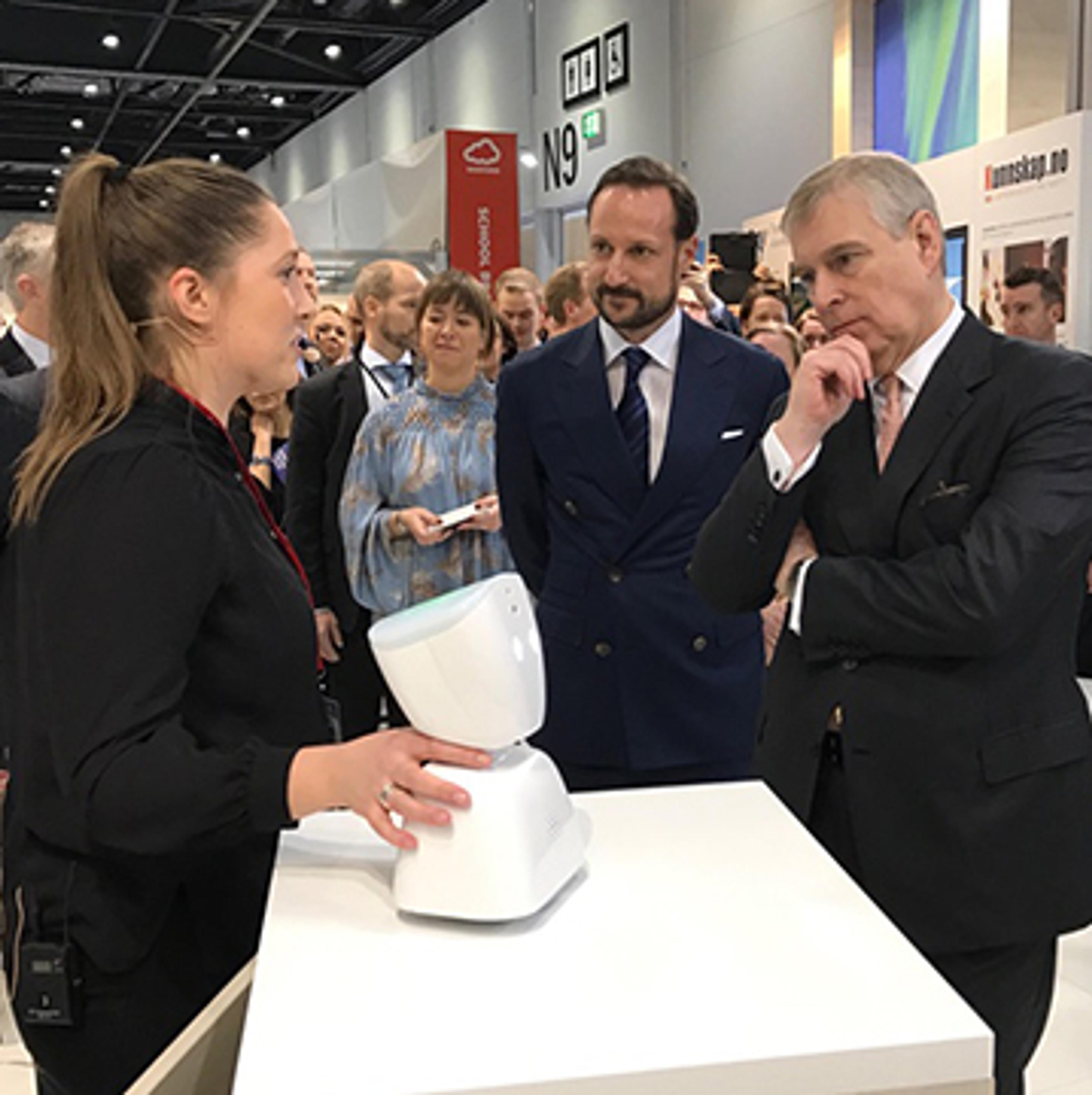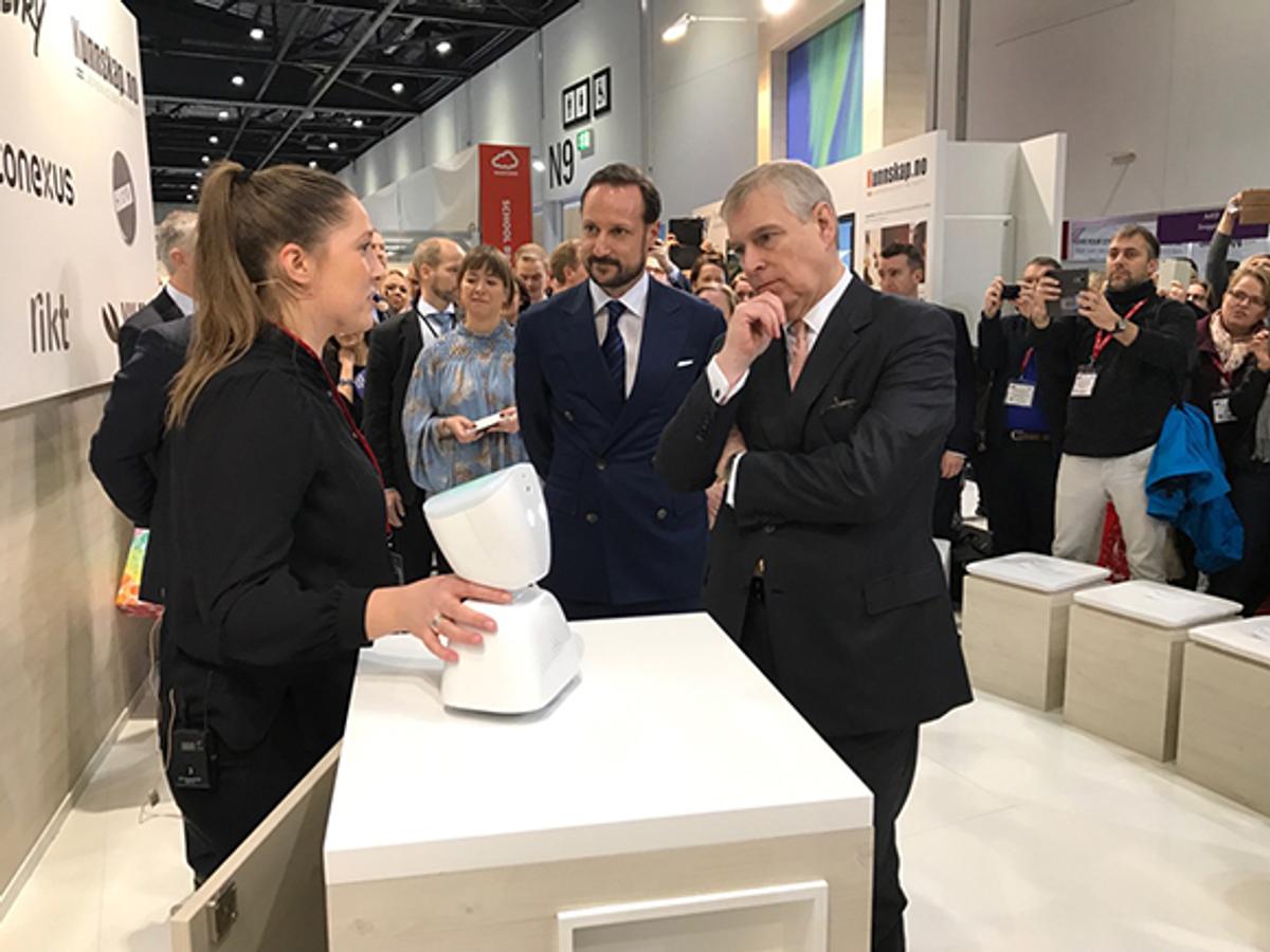 Kronprins Haakon kom til BETT saman med Hertugen av York, som viste fram det britiske selskapet SAM Labs. Selskapet fanga Hertugens interesse under Pitch@Palace – eit arrangement som inviterer menneske med gode idear innanfor tech-næringa til å vise seg fram for eit breitt publikum og investorar.