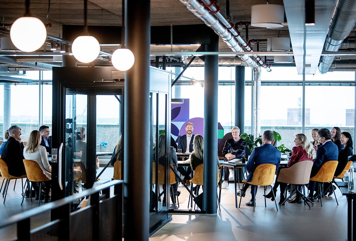– Det er hyggeleg å gjere dette på første arbeidsdag etter full gjenopning. Dette er eit rom for oversikt og visjonar, og det er fint å få denne oppdateringa frå dykk, sa Kronprins Haakon, som leidde rundebordssamtalen på Rebel i Oslo.