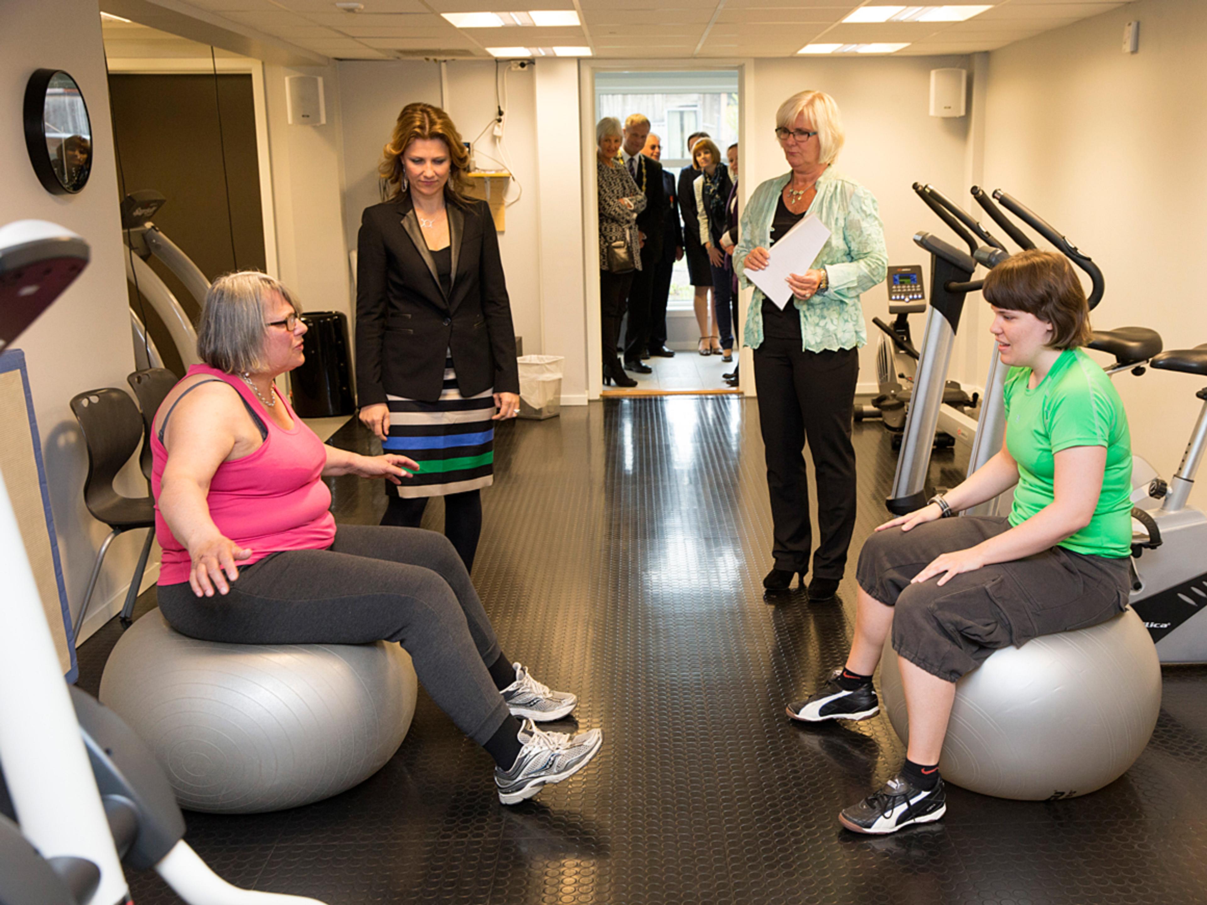 I avdelingen for fysisk aktivitet fikk Prinsesse Märtha Louise overvære spinning i gymsalen, vanngymnastikk i bassenget og massasje i velværerommet i Skrukkelia.