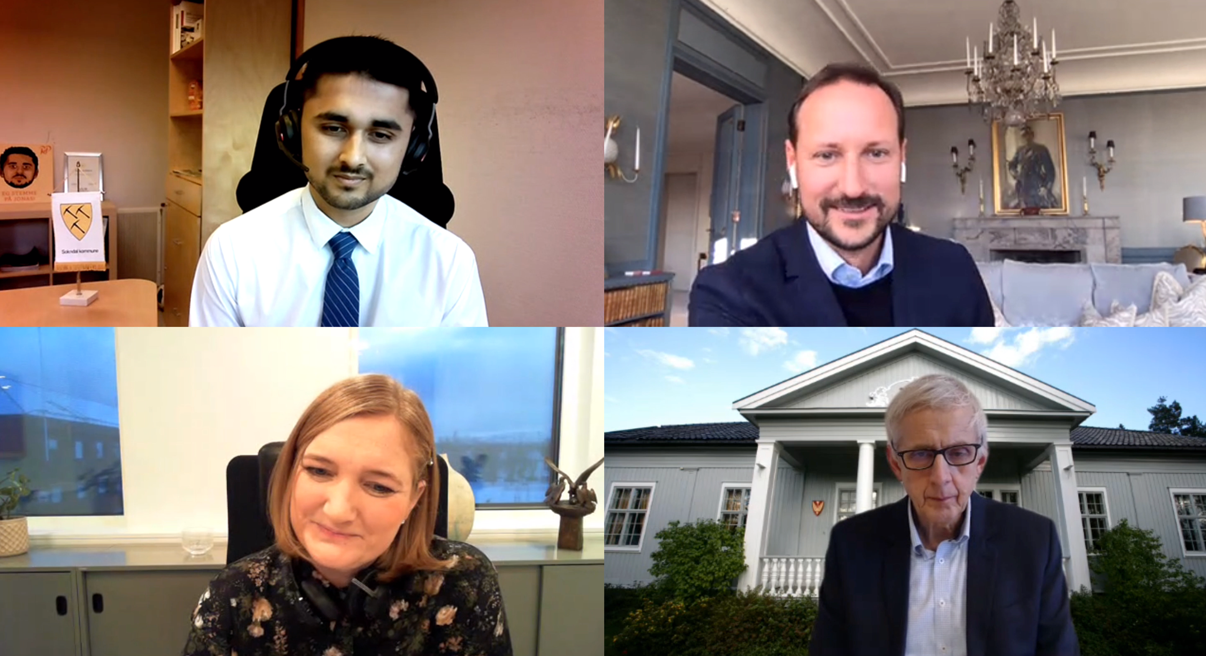 Kommunene står fremst i håndteringen av pandemien. – Takk til dere, men også laget som står rundt dere, sa H.K.H. Kronprins Haakon i videomøte med ordførerne i Bodø, Sokndal og Våler.