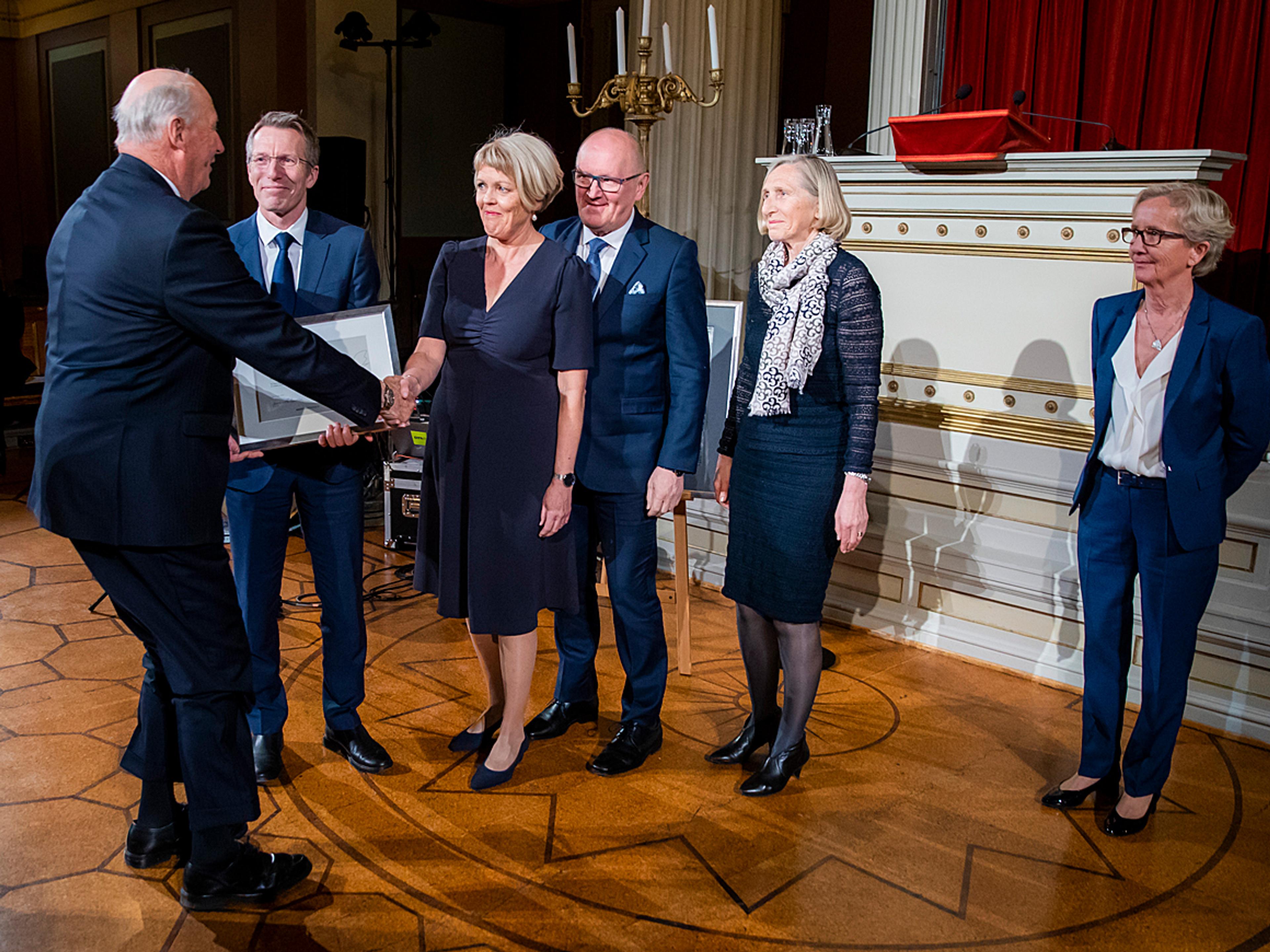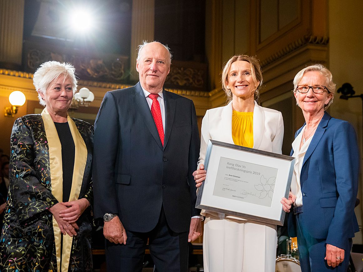 Hans Majestet delte i dag ut Kong Olav Vs Kreftforskingspris til Anne Simonsen og Norwegian Breast Cancer Group (NBCG).