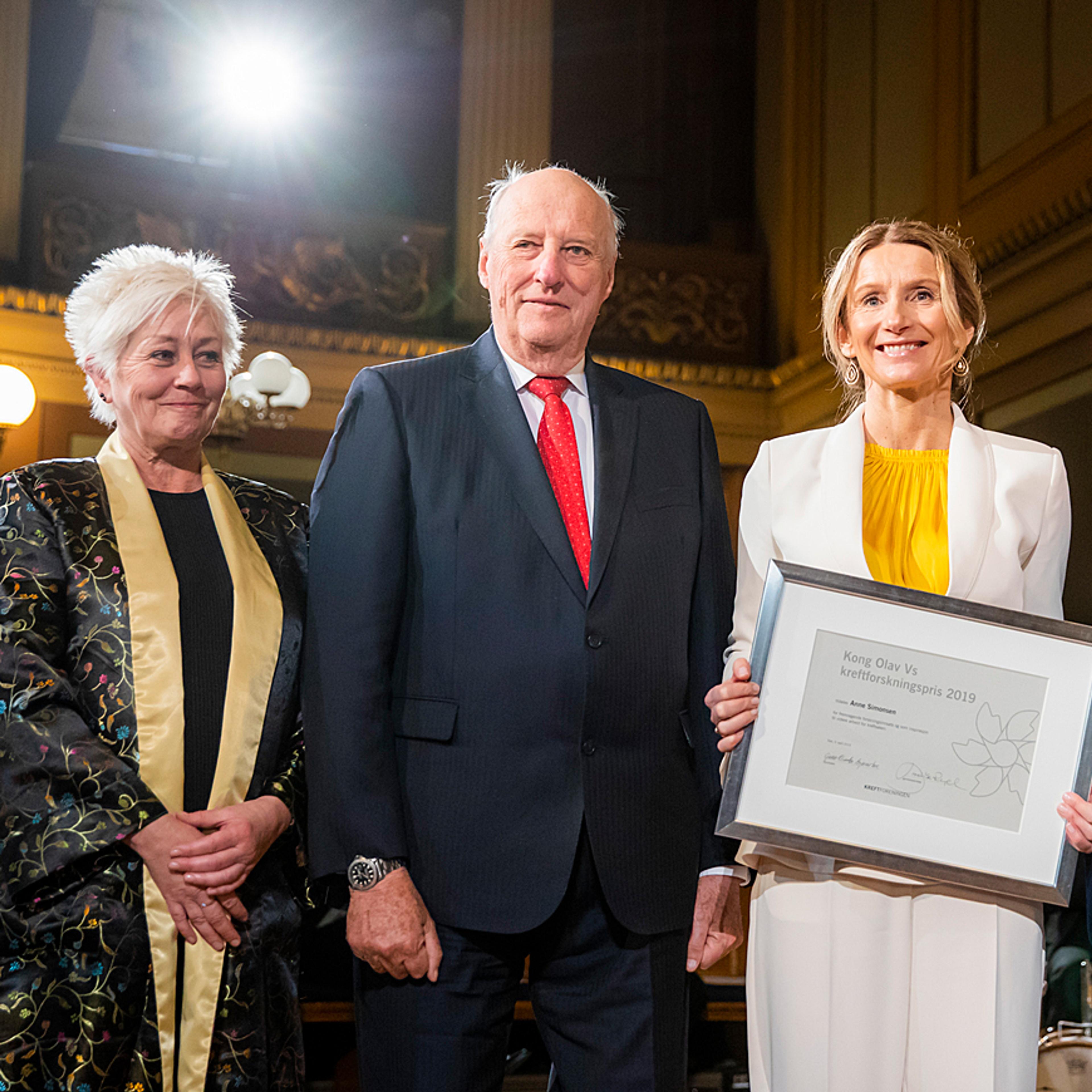 Kong Harald overrekte prisen på vegner av Kreftforeningen.