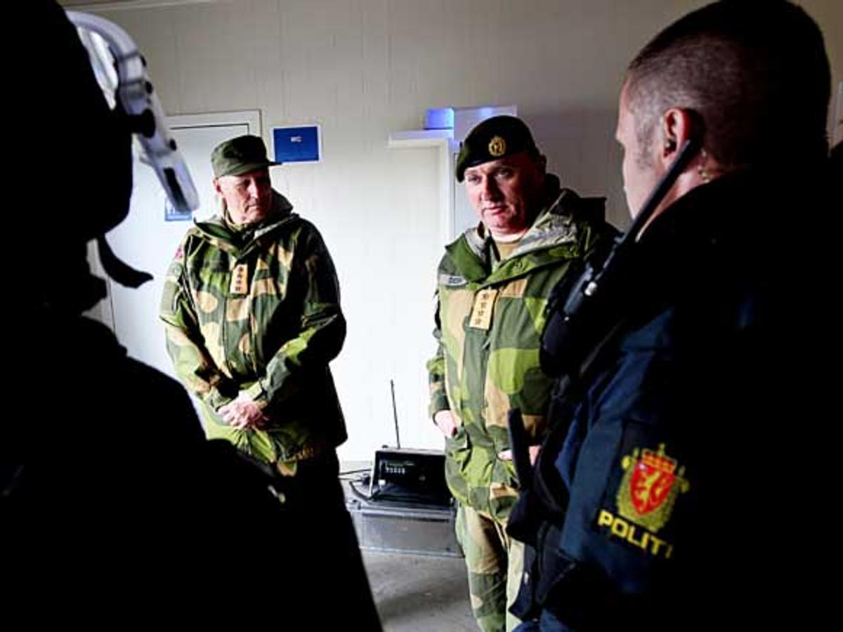 H.M. Kongen inspiserte Øving Gemini onsdag. Øvinga er den viktigaste sivil–militære samvirkeøvinga i 2009, og samarbeid mellom Forsvaret og Politiet står sentralt.