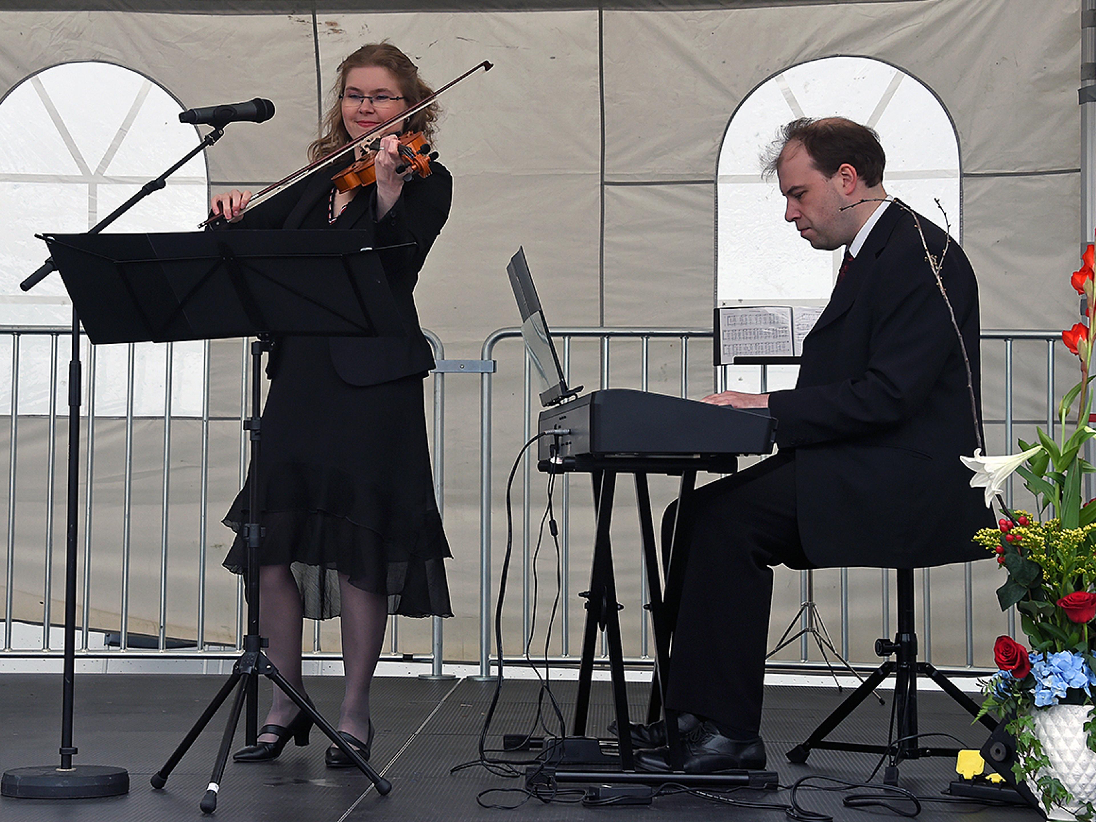 På Rådhusplassen var det rigget til folkefest med musikk og taler, og Kongeparet fikk høre både barn og voksne, korsang og jazzmusikk ved ekteparet Janne og Hanna Leena Kankaala. Etter ordførerens tale, var det Dronningens tur.