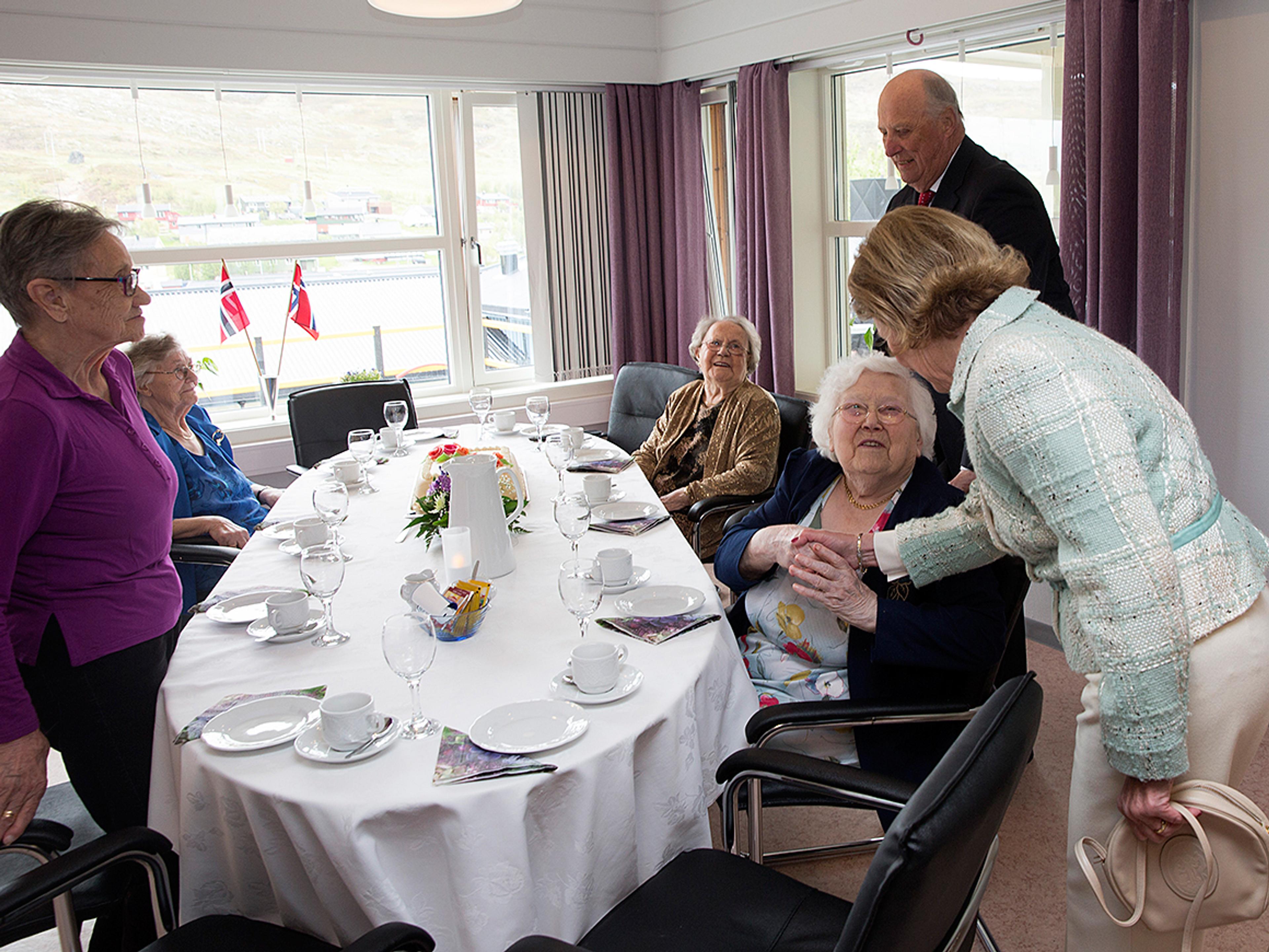 Kongeparet fikk oppleve utstillingen elever hadde laget om Kvalsund i fortid, nåtid og fremtid, og det ble også anledning til å møte noen av bygdas eldste – både på plassen og på Kvalsund sykehjem som Kongen og Dronningen besøkte etter arrangementet ved rådhuset.