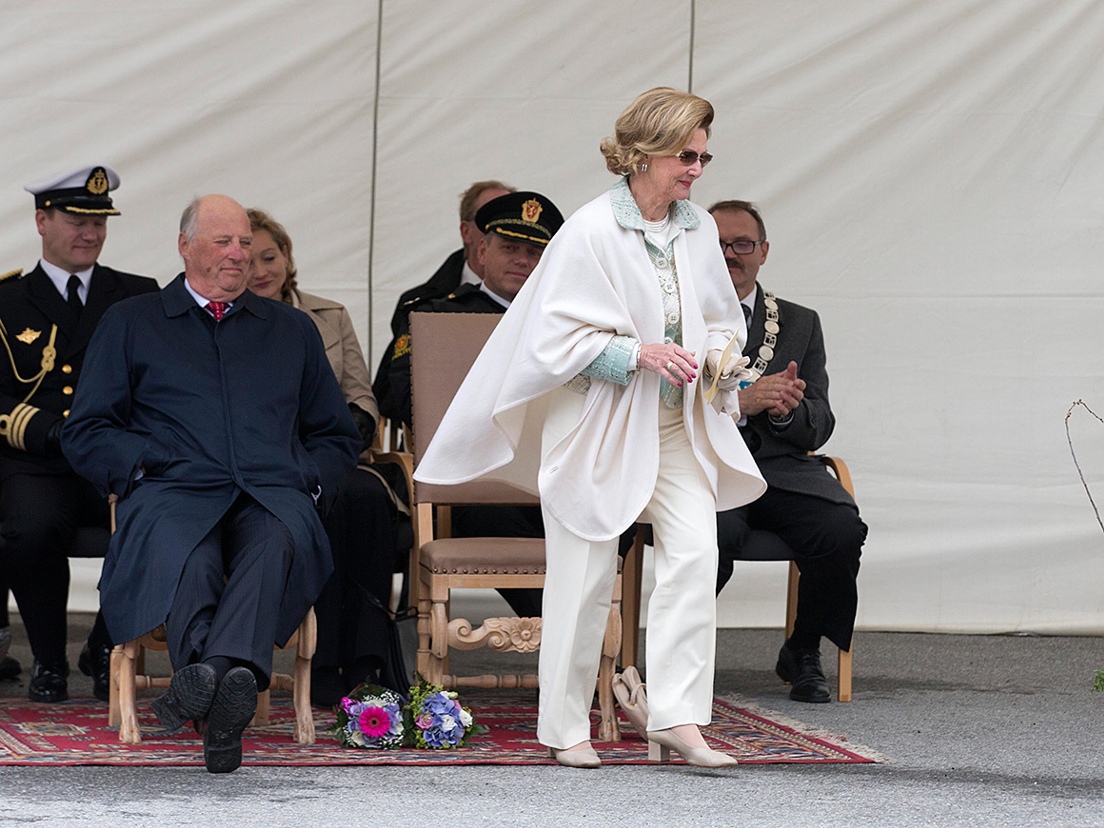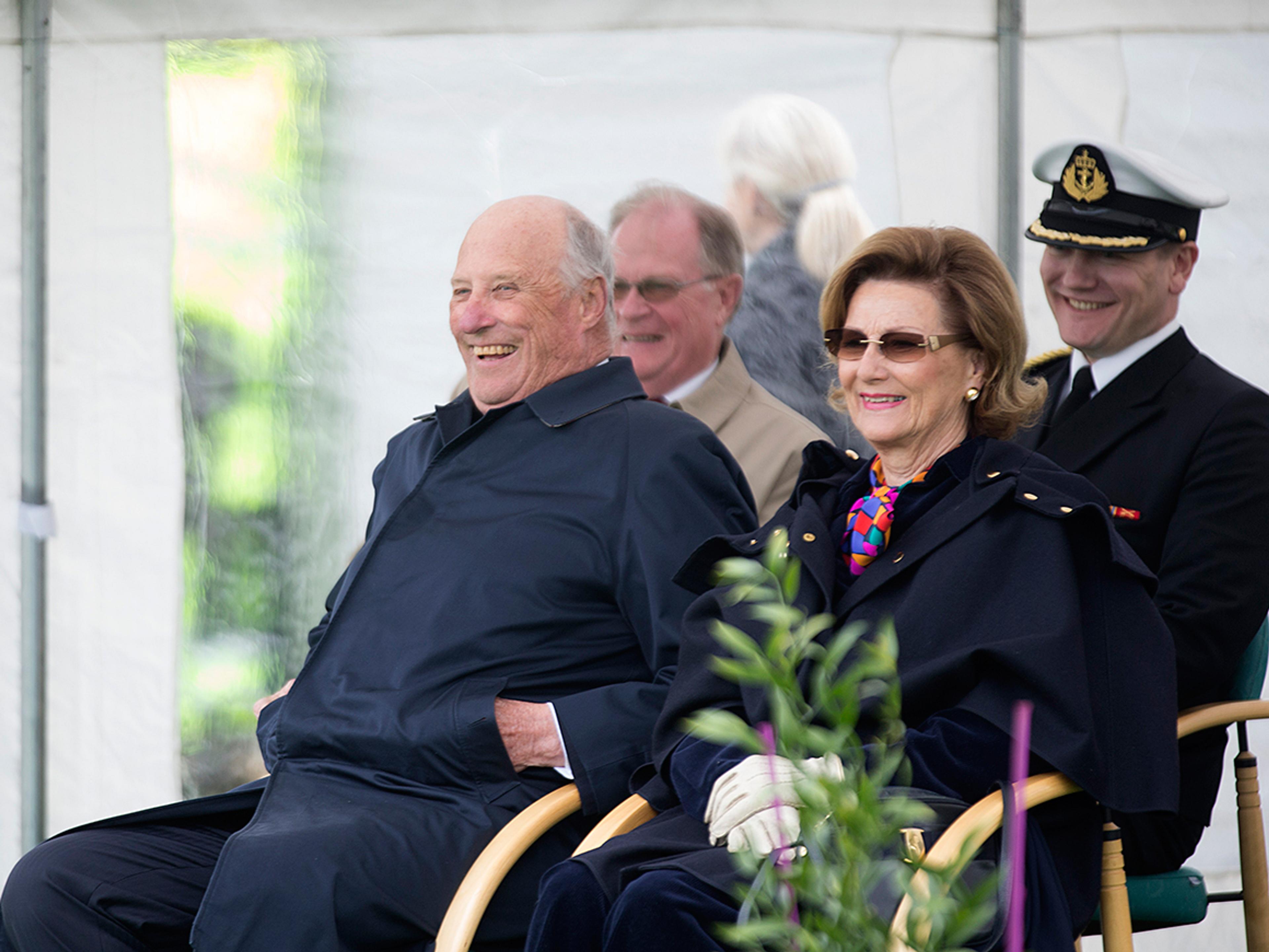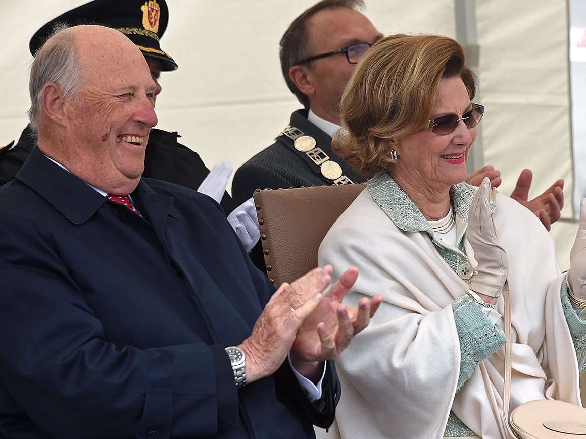 Havøysund i Måsøy kommune er anløpssted for Hurtigruta, men i dag var det Kongeskipet som la til utenfor fiskeværet. Kongen og Dronningen gikk i land på kaia i ettermiddag og videre til fotballbanen, der måsøyinger var møtt fram for å møte Kongeparet.