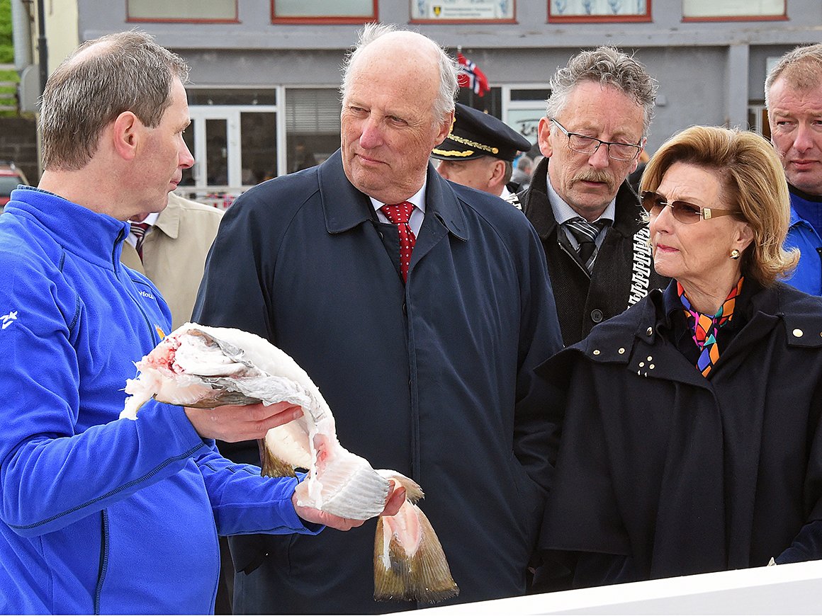Kongeparet rundet av besøket på fiskerikaia, der fiskere og fiskeribedrifter viste fram noe av det havet her har å by på.