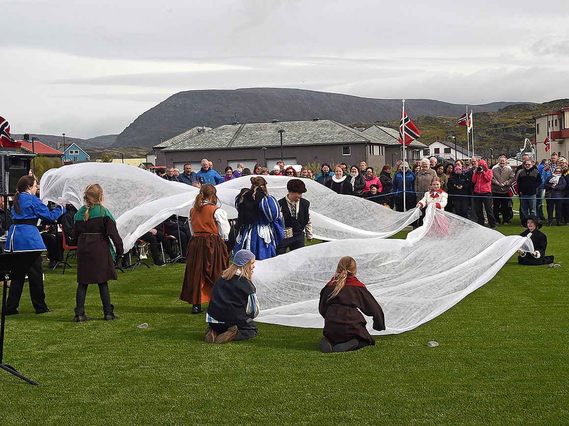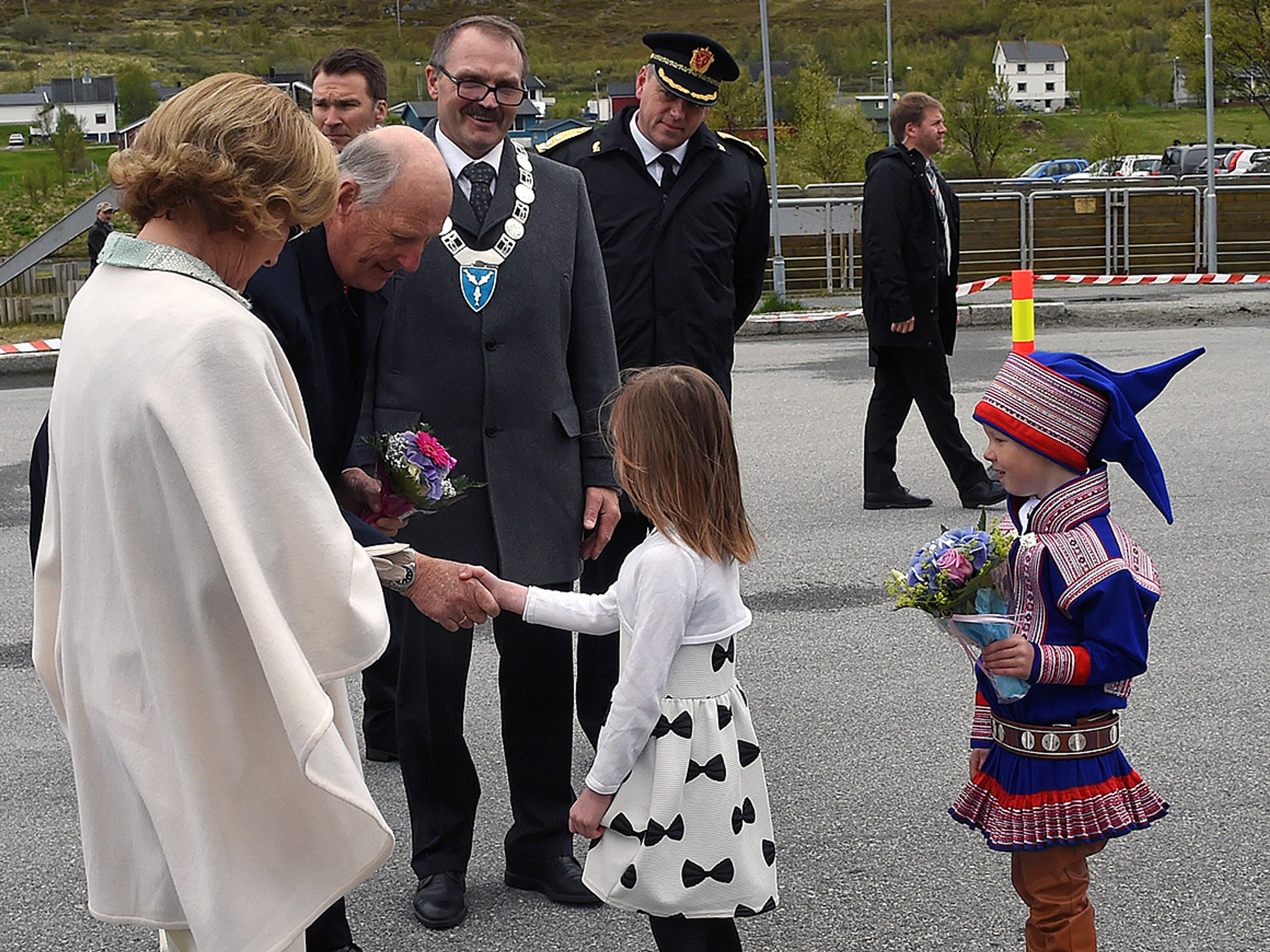 Ordfører Ragnar Olsen og mange av Kvalsunds drøyt 1000 innbyggere var møtt fram for å hilse Kongeparet velkommen. Kommunen ligger sørøst for Hammerfest, med fjorder og sund – men også frodig skog og gode lakseelver.