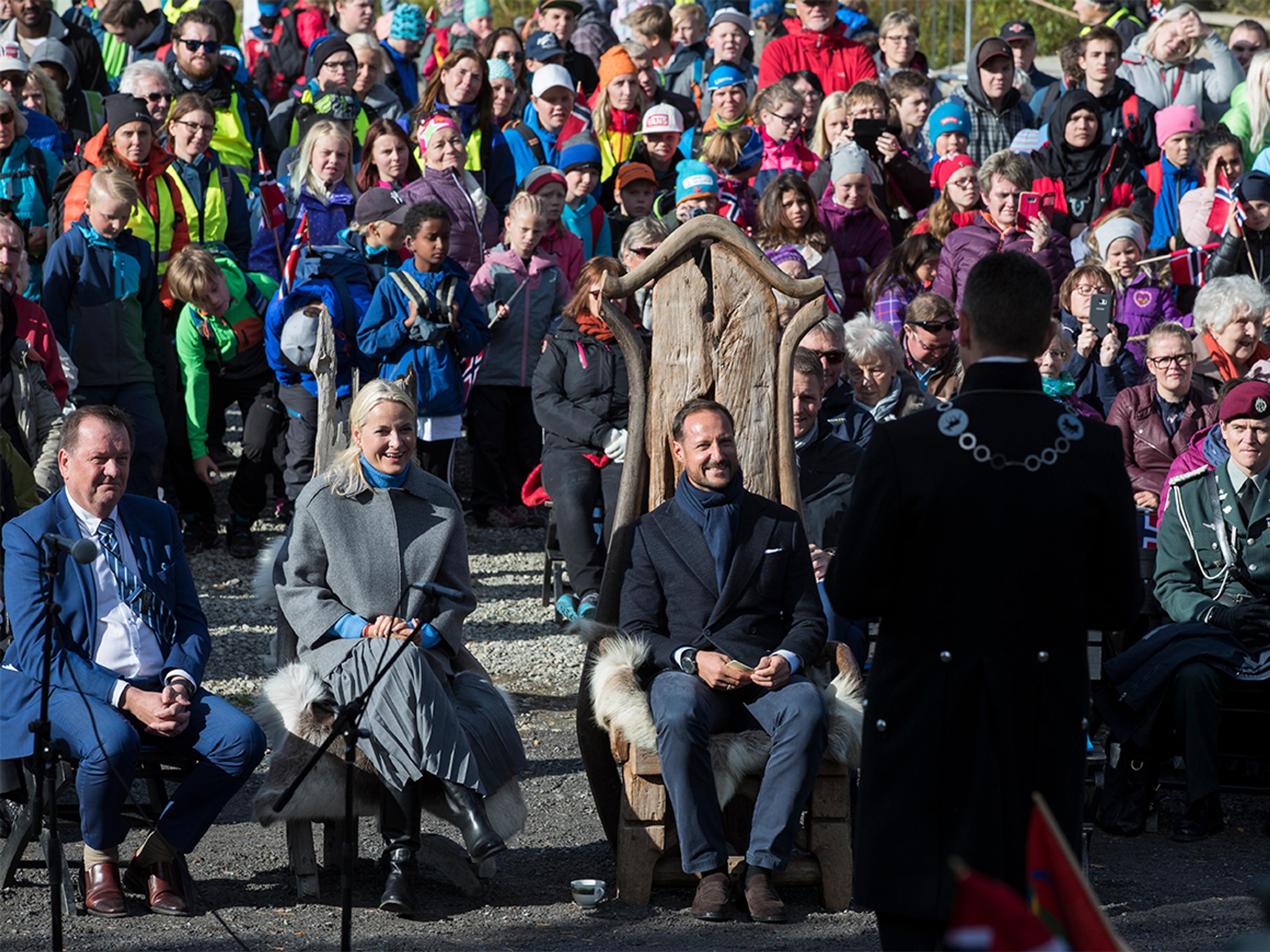 Ved Fjellstu ved Tronestjønna var små og store samlet. Alle barna i de tre lokale barnehagene Bamesebo, labbetussen og Tiriltoppen sang MOT-sangen for Kronprinsen og Kronprinsessen sammen med alle fra Namsskogan skole.