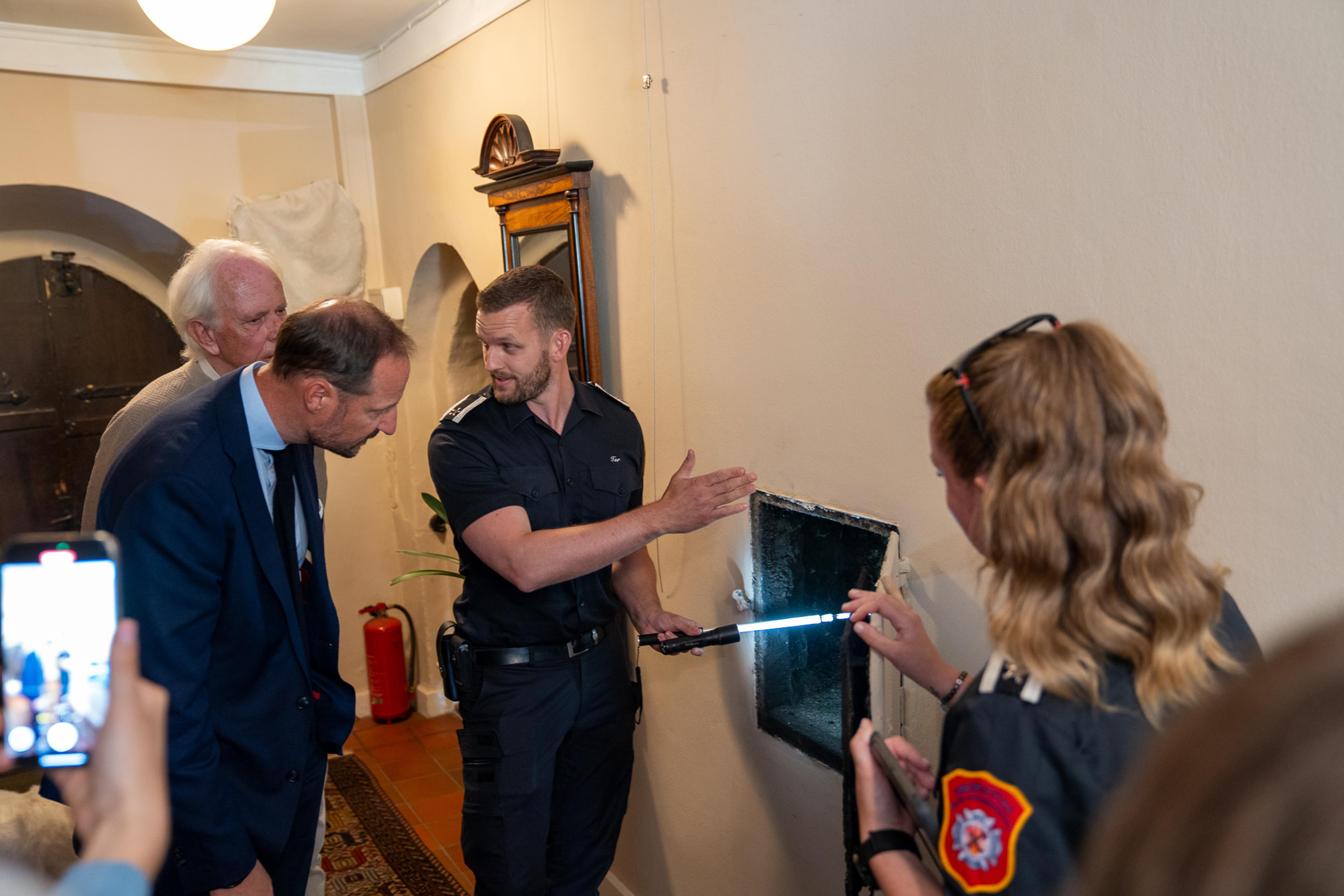 Kronprinsen besøkte tre boliger i Fredrikstad, blant annet sammen med styremedlem i Feiermesternes Landsforening, Anette N. Garder. Her deltok han i ordinært brannforebyggende tilsyn, tilsyn med gassanlegg og feiing av fyringsanlegg.