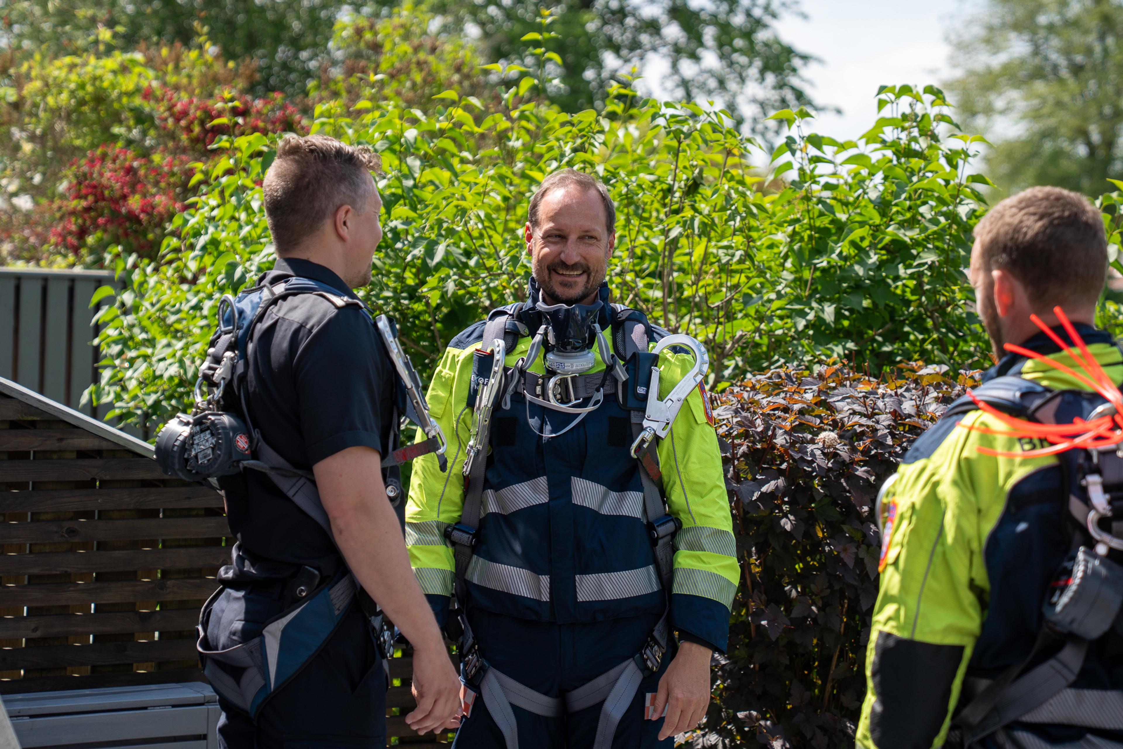 Hans Kongelige Høyhet Kronprins Haakon deltok på en arbeidsdag med forebyggende brannvern i anledning Feiermesternes Landsforenings 80-årsjubileum.