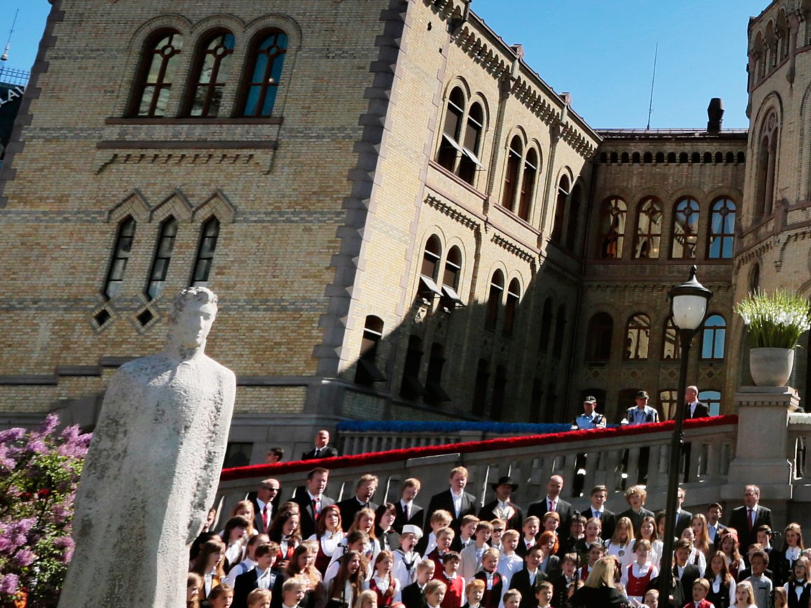 I går avduket Hennes Majestet Dronning Margrethe av Danmark statuen av Kong Christian Frederik på Eidsvoll plass foran Stortinget. Både det danske regentparet og vårt eget kongepar var til stede under seremonien.