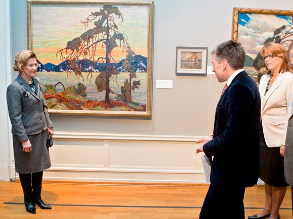 Utstillinga vart formelt opna av chargé d’affaires ved den kanadiske ambassaden i Oslo i ettermiddag, og Dronning Sonja fekk ei inngåande omvising av Charles Hill frå National Gallery of Canada saman med prosjektleiar og kurator Frode Haverkamp og formidlingskurator Ellen Lerberg frå Nasjonalgalleriet.