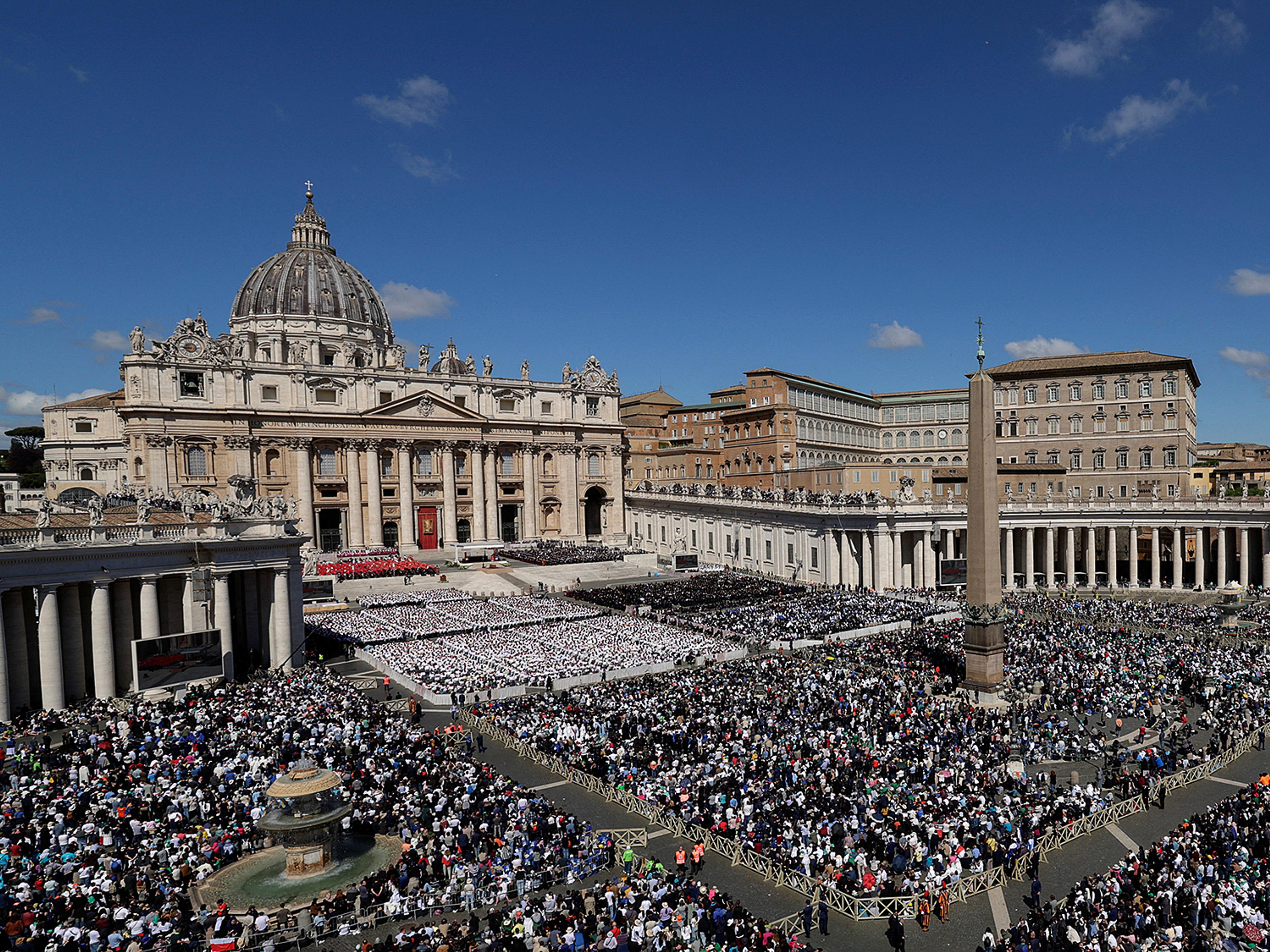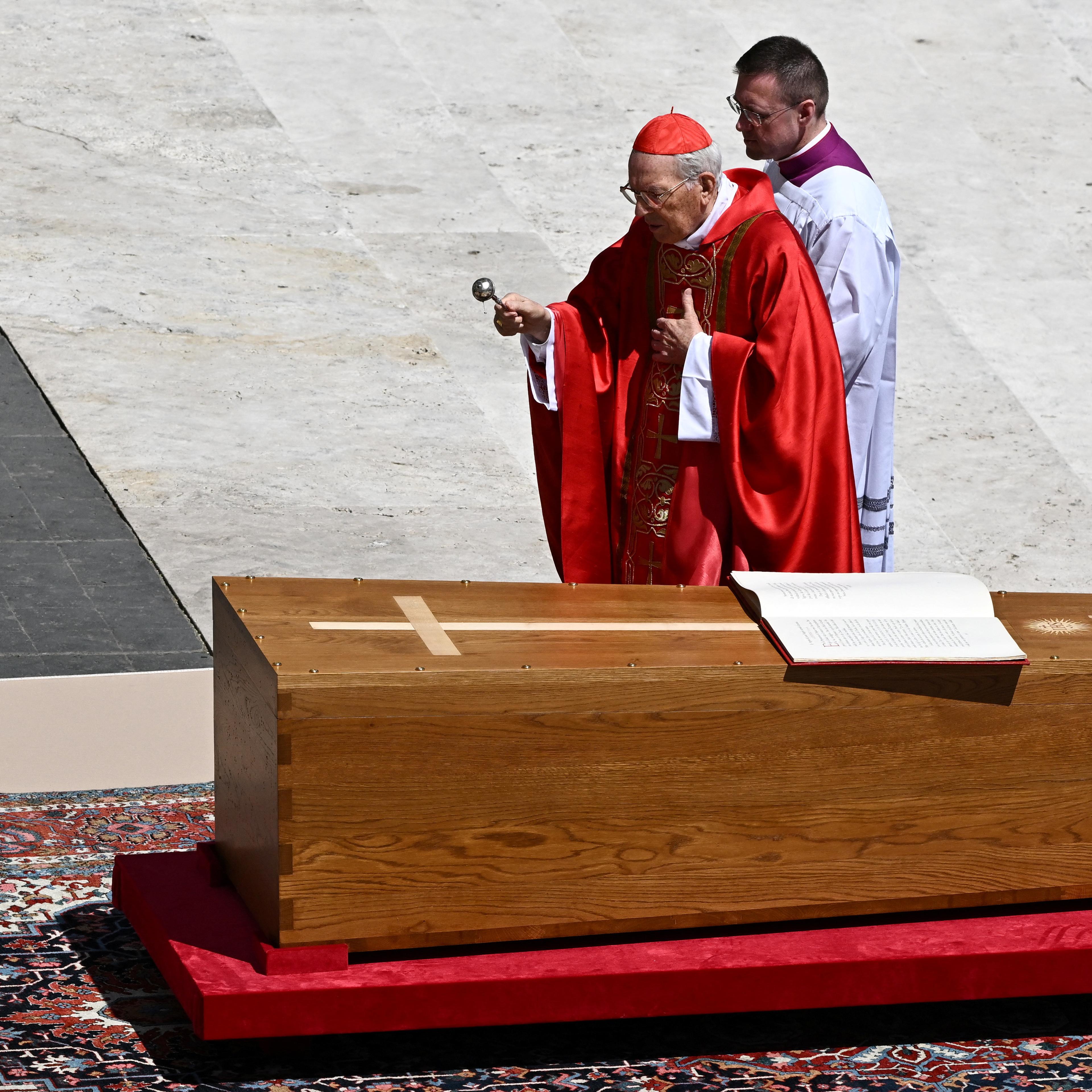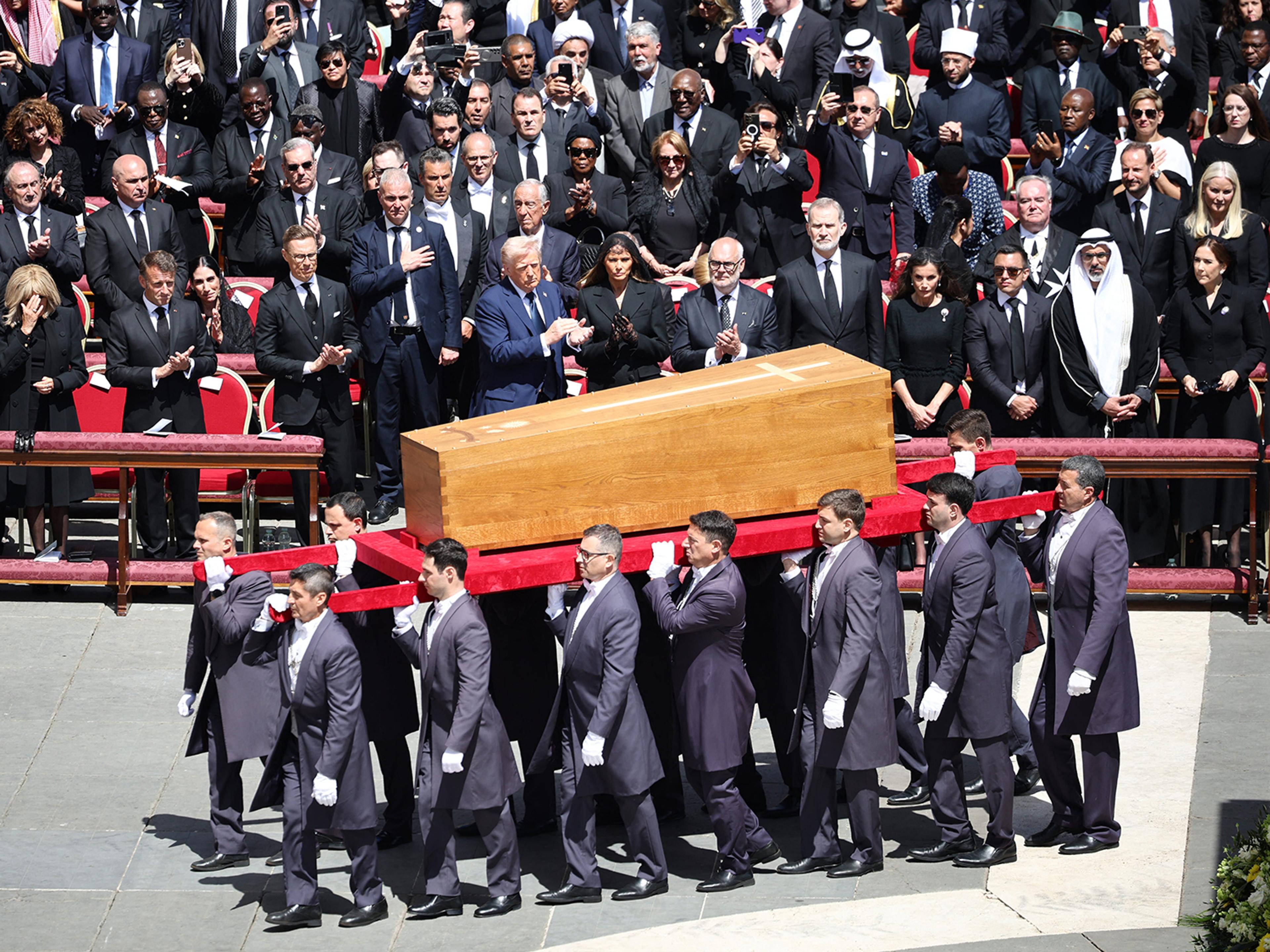 Enorme menneskemengder fylte Petersplassen og Vatikanet i dag. Ledere fra hele verden var også møtt fram for å vise den folkekjære paven den siste ære. Begravelsesmessen ble ledet av kardinal Giovanni Battista Re, lederen av kardinalkollegiet.