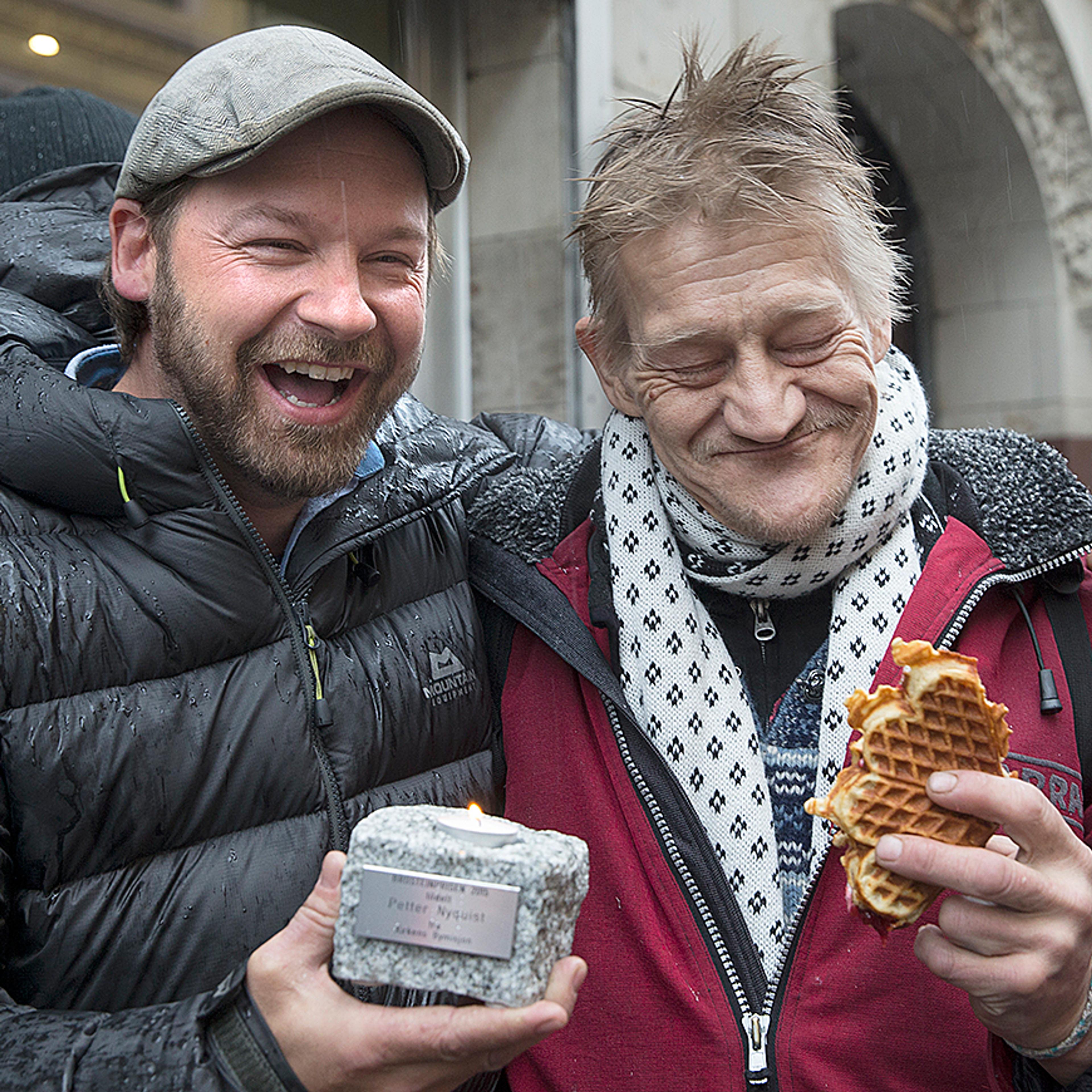 Nyquist ønsket å dele prisen med dem som har fortalt om sine liv i serien og som ble hans venner på gata. Ikke minst med Svein, som han traff den første dagen og som viste ham hvordan han kunne overleve der.