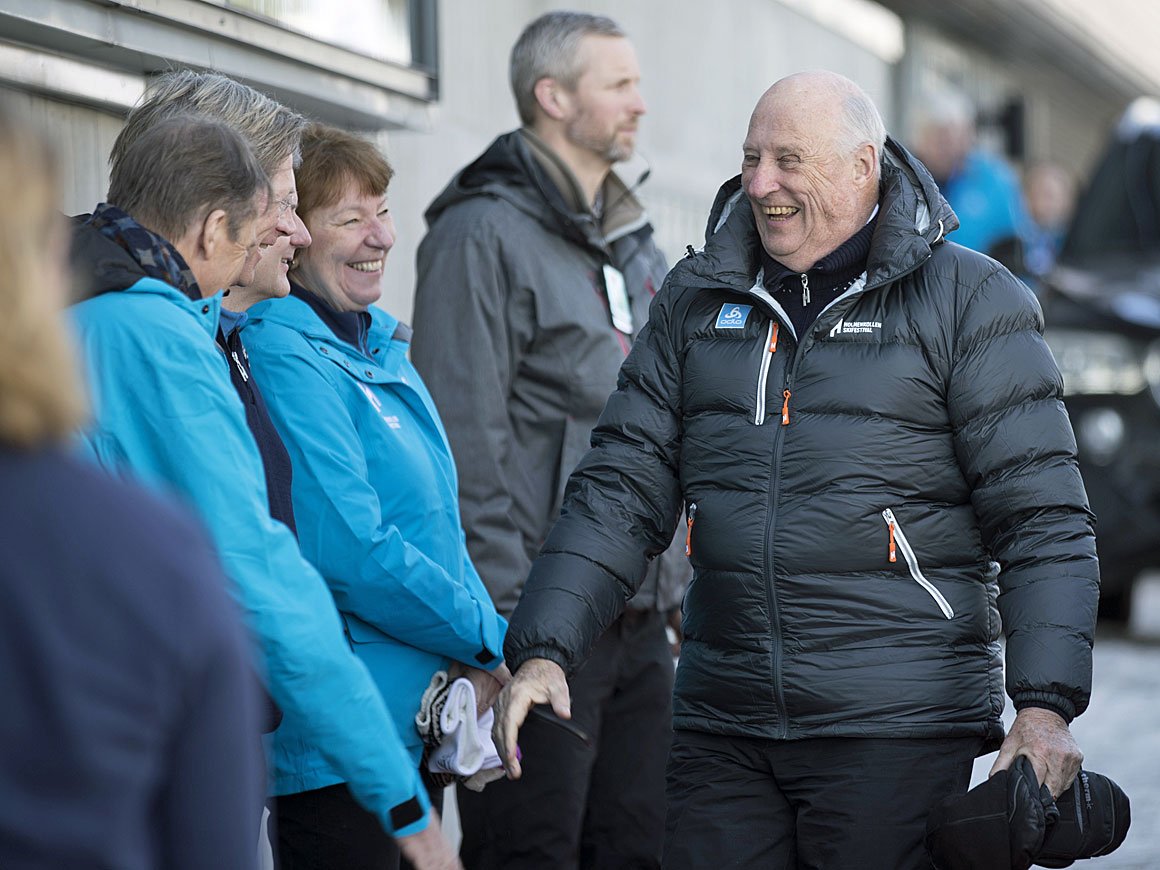 Hans Majestet Kong Harald vart feira med pølsefest i kveld. Kongefamilien og over 100 unge langrennsløparar frå heile landet deltok.