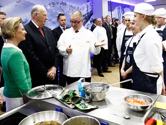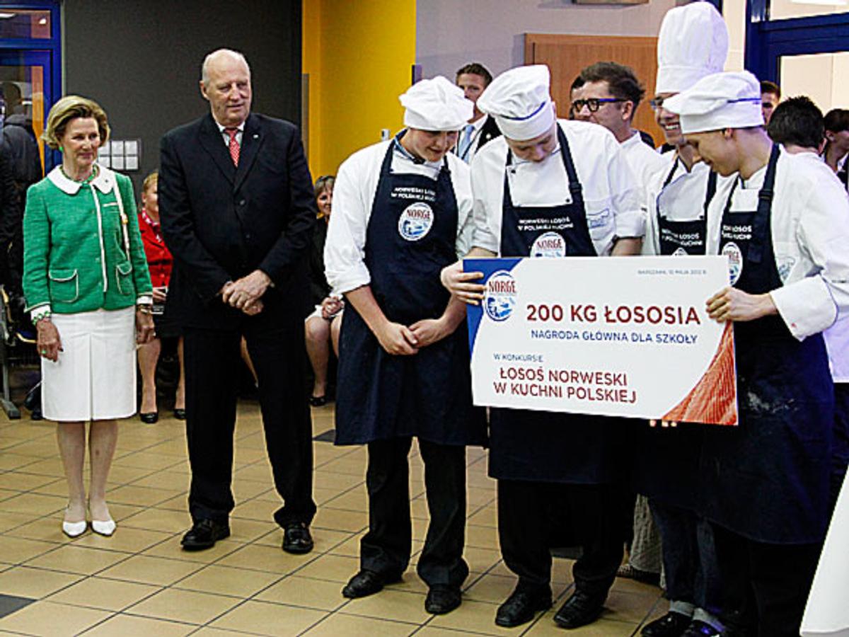 Bare Frankrike importerer mer laks fra Norge enn Polen, og de siste årene har Sjømatrådet samarbeidet med polske kokkeskoler for å øke kunnskapen om tilberedning av norsk laks. I år har de beste skolene sendt 240 deltakere til konkurransen «Norsk fisk i det polske kjøkken», og i ettermiddag stilte tolv lag til finale med Kongen og Dronningen til stede.