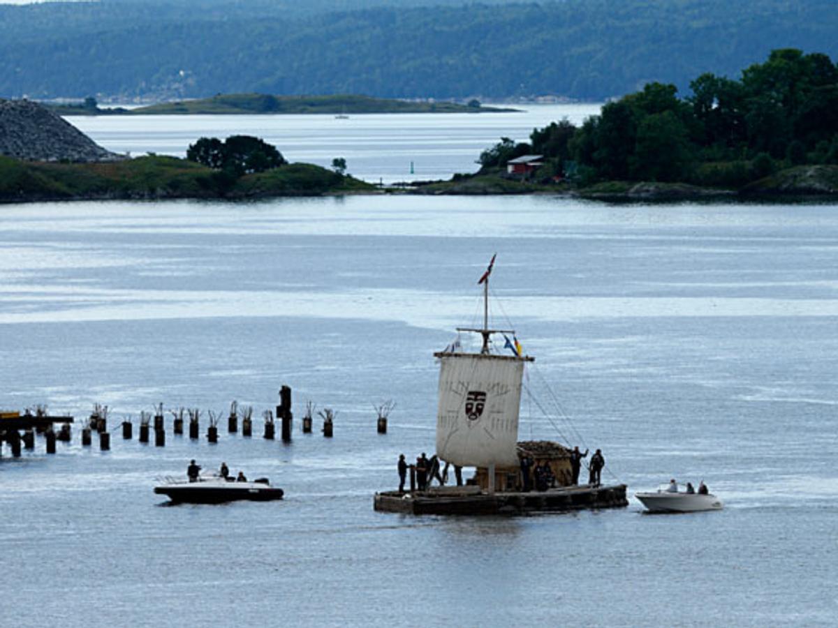 Tidligere samme dag ankom skuespillerne Operaen sjøveien, på filmens Kon-Tiki-flåte