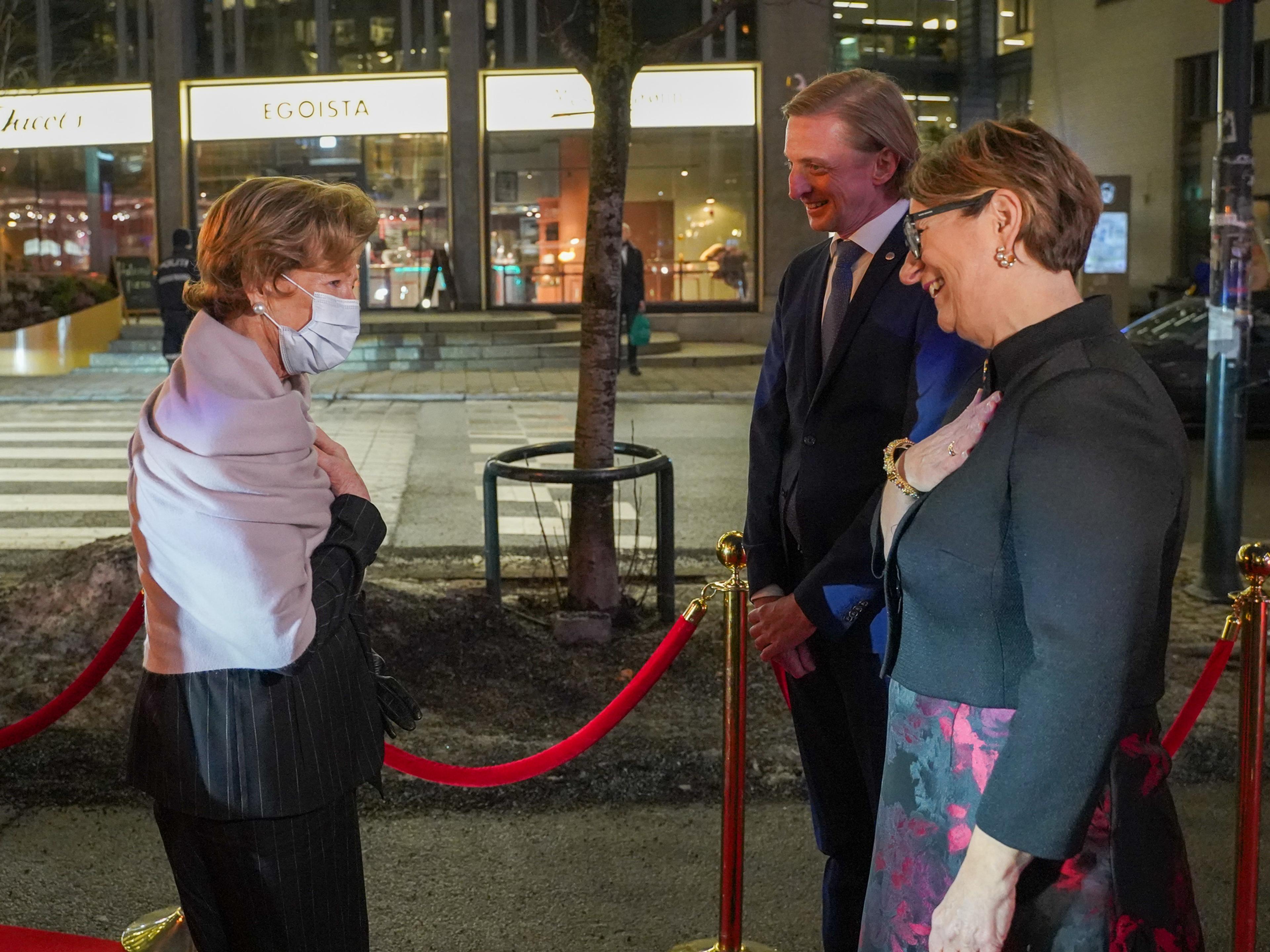 Ved ankomst festpremieren ble Dronning Sonja og Kronprinsesse Mette-Marit ønsket velkommen av styreleder Tone Wilhelmsen Trøen og generalsekretær Espen Stedje i Foreningen Norden. Dronningen og Kronprinsessen hilste også på programprodusent Christin Berg i Nordisk Film Kino, filmens danske regissør Charlotte Sieling og fire produsenter.