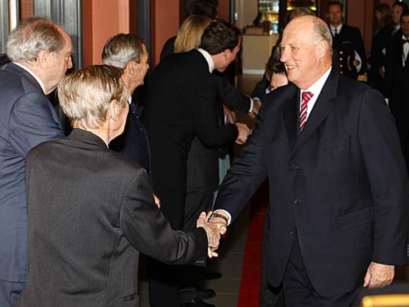 Følget ble tatt i mot utenfor Colosseum kino av administrerende direktør for Oslo Kino, Geir Bergkastet og filmprodusent John M. Jacobsen. De fikk hilse på inviterte krigsveteraner som bl.a. Gunnar Sønsteby, samt hovedrolleinnehavere, regissører, produsenter og manusforfatter til filmen.