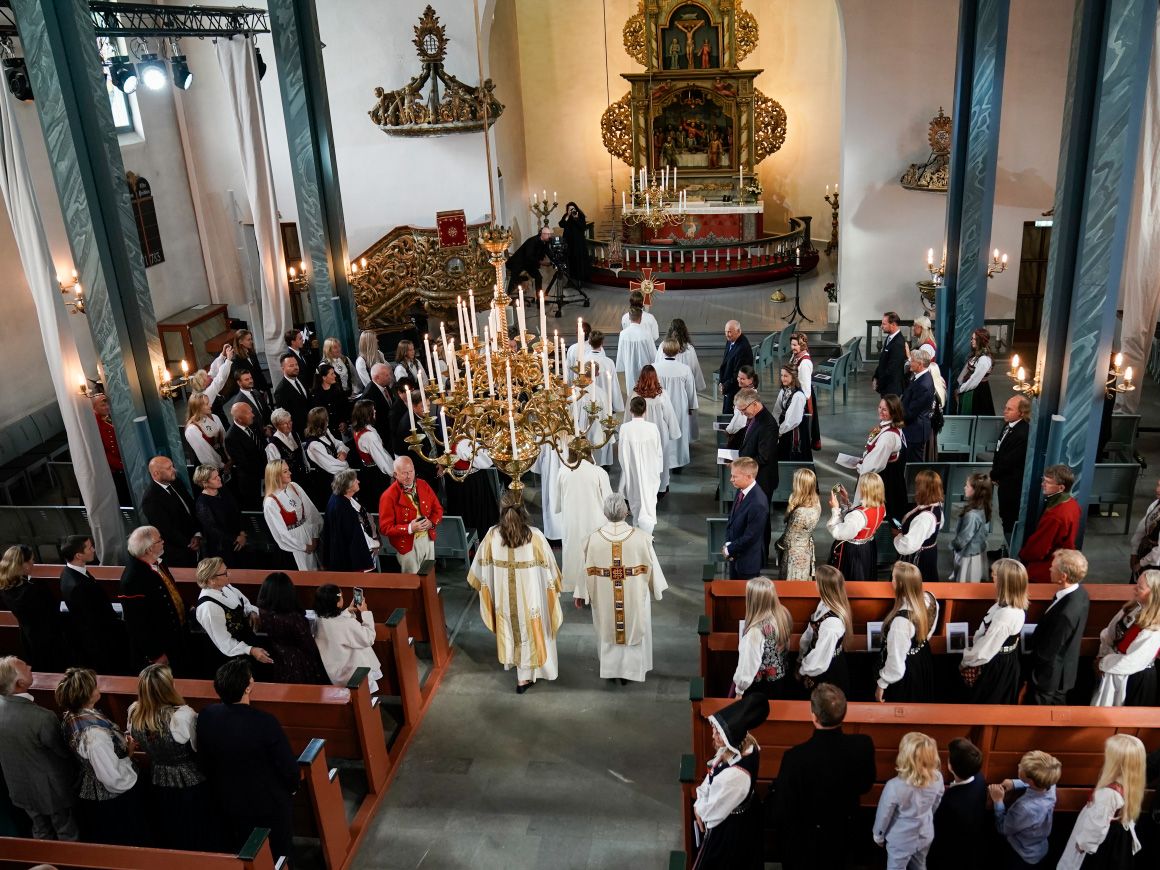 Sogneprest Karoline Astrup, kapellan Marita Elvemo Sivertsen og menighetspedagog Liv-Iren Westnes ledet gudstjenesten, der også preses i Den norske kirke, Olav Fykse Tveit, var til stede.