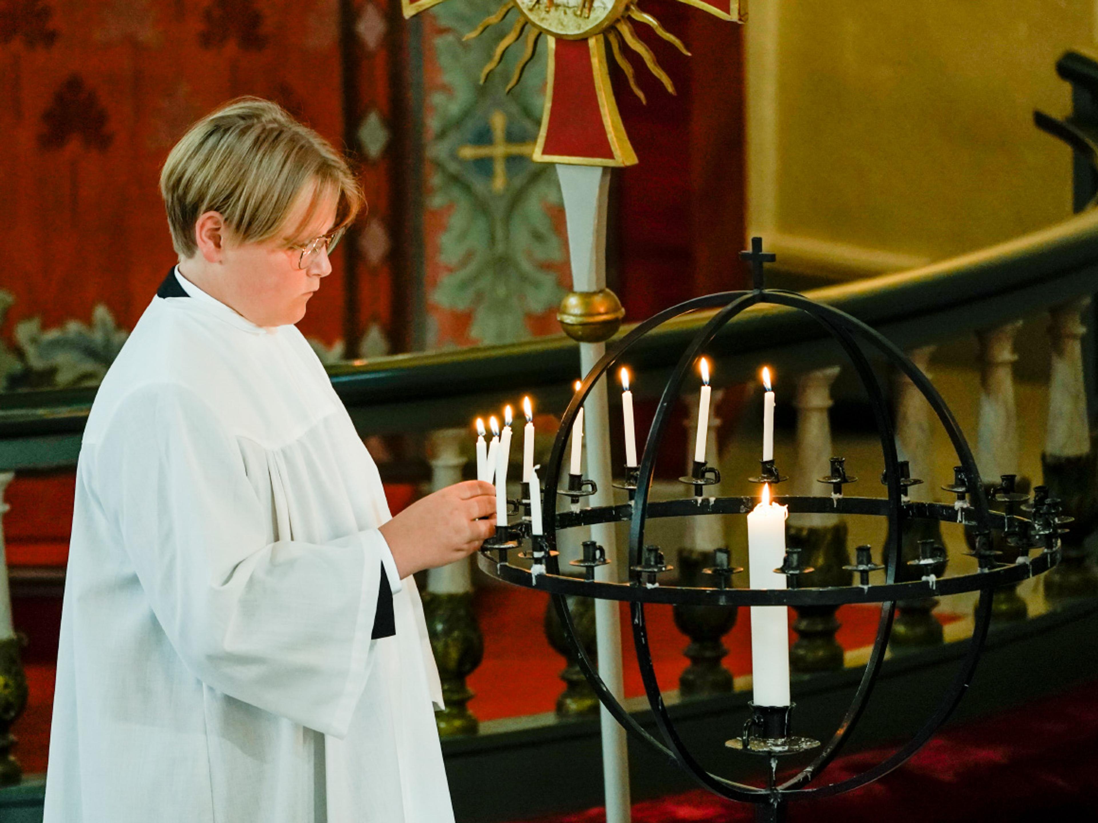Forsamlingen ba for konfirmantene før sokneprest Astrup kalte dem fram til alterringen:
