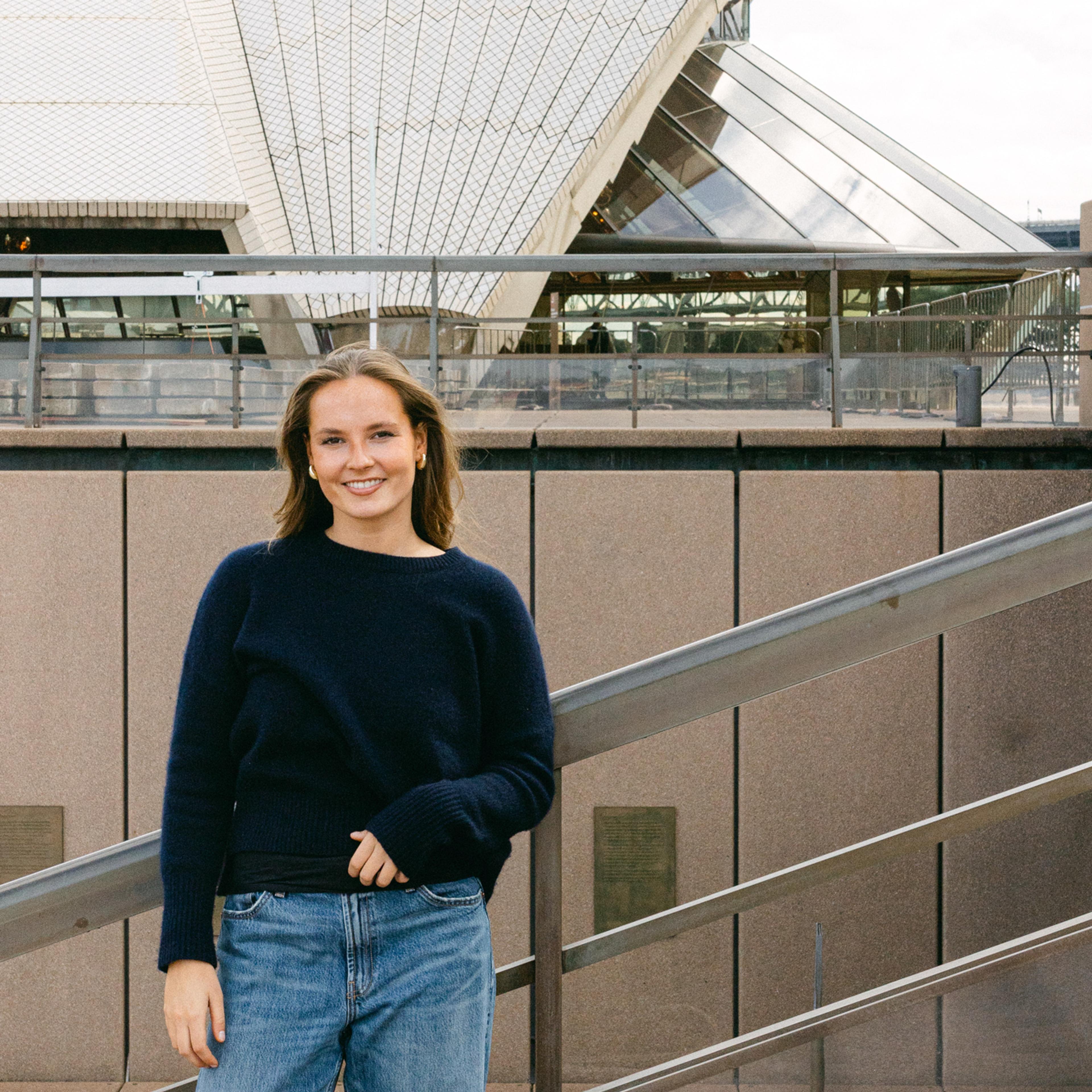 I anledning studiestart er det tatt bilder av Prinsesse Ingrid Alexandra på universitetsområdet samt utenfor operahuset i Sydney.