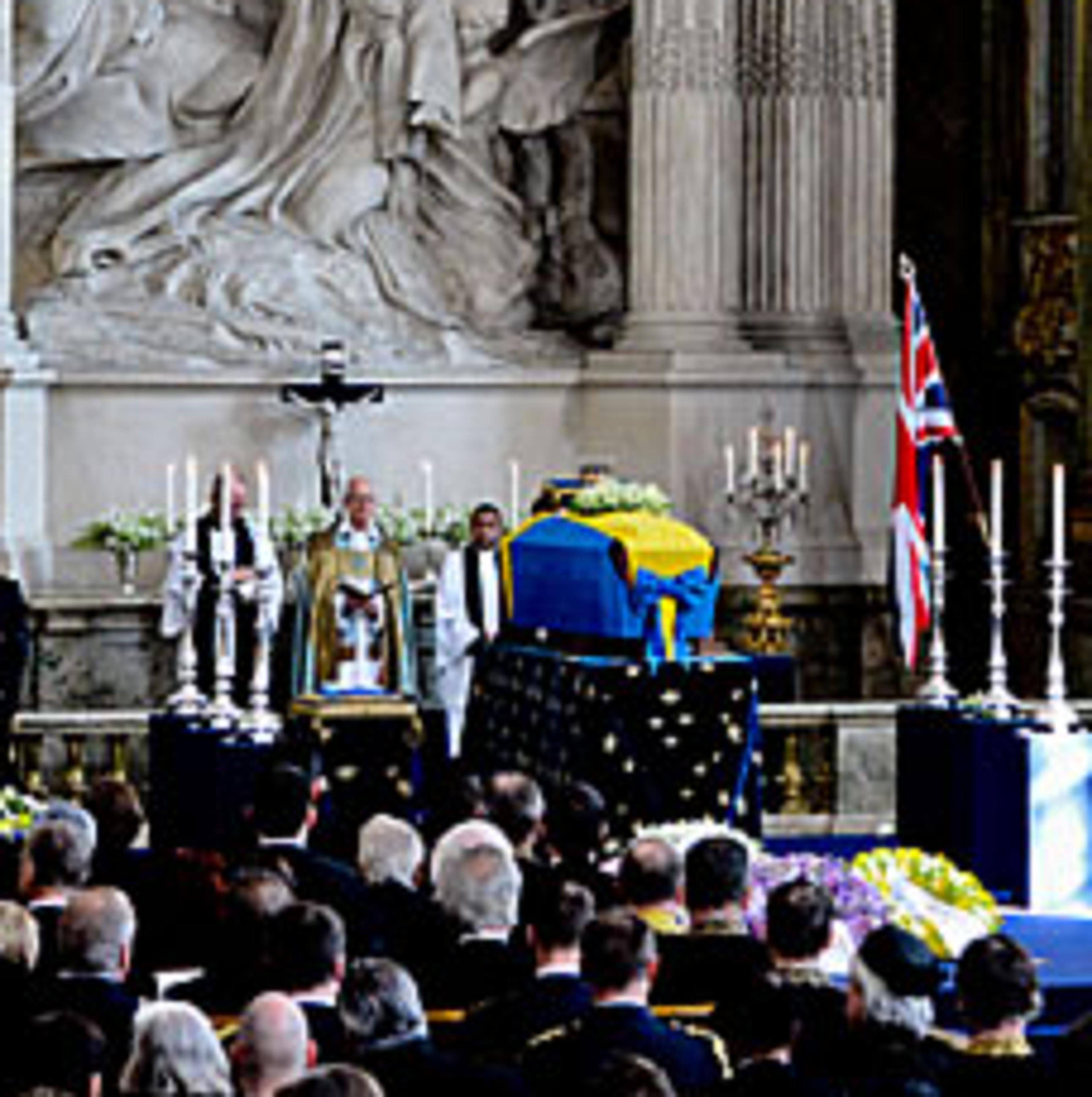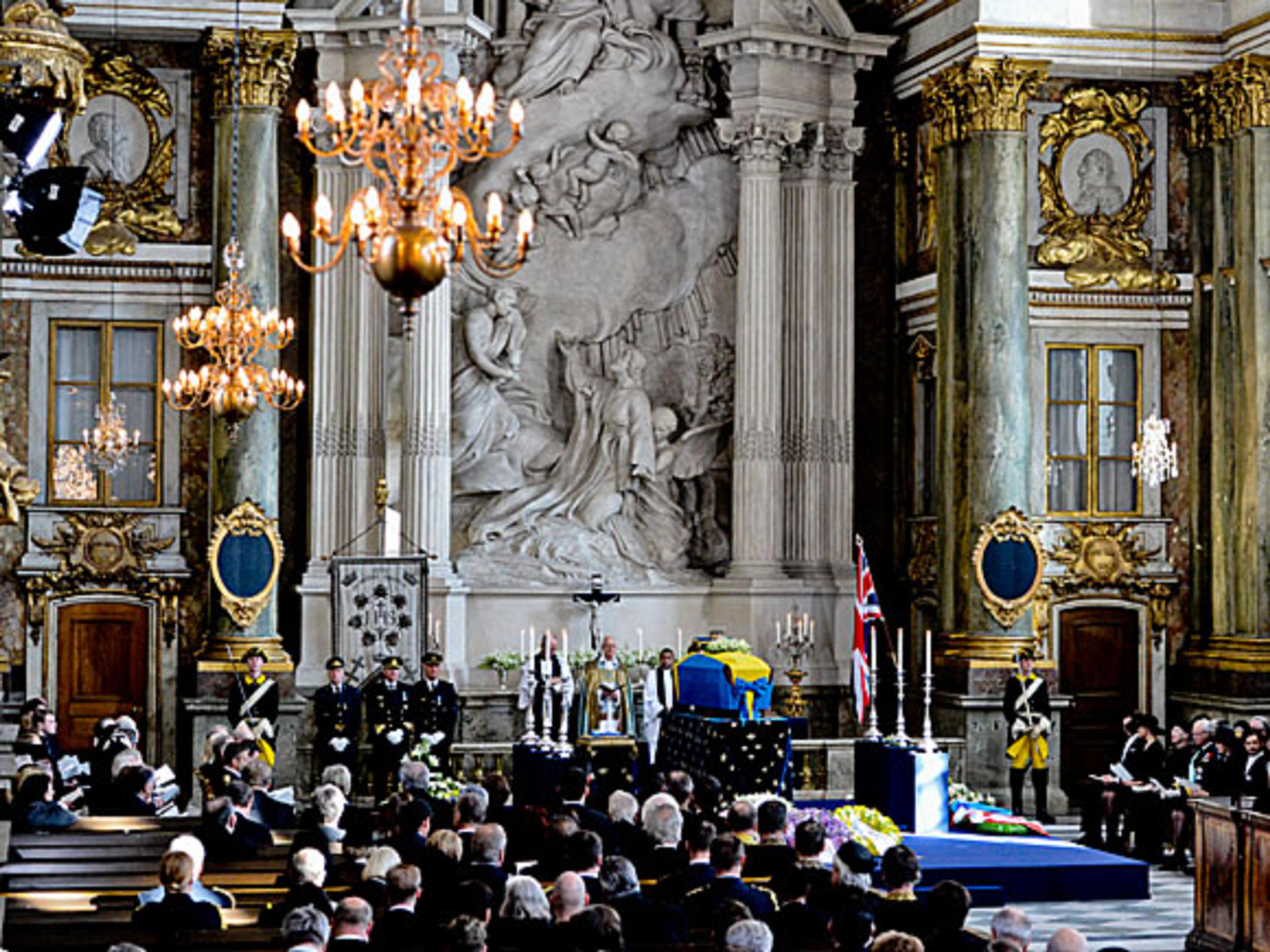 Gravferdsseremonien vart forretta av overhoffpredikant og biskop emeritus Lars-Göran Lönnermark, assistert av hoffpastor Michael Bjerkhagen og prest i den engelske kyrkja Nicholas Howe. Den svenske Kongefamilien og gjester frå Europas Kongehus var til stades i Slottskyrkja.
