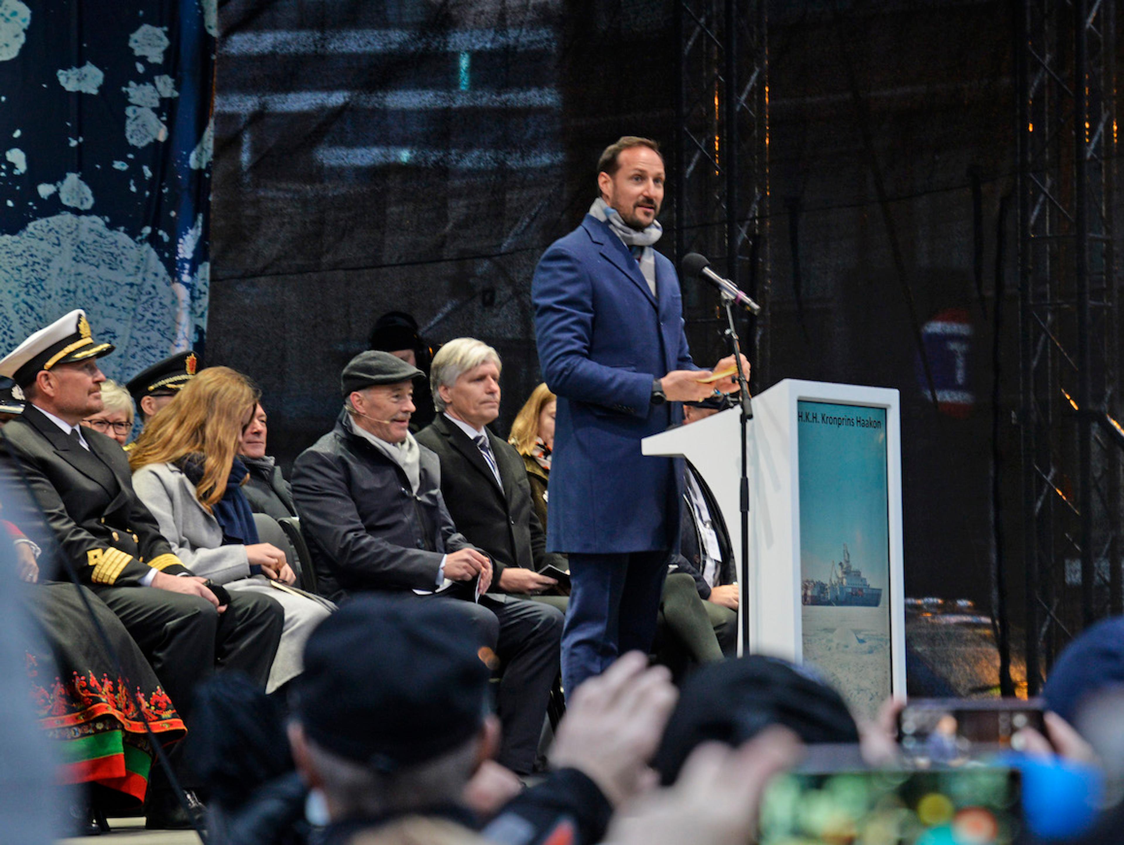 Hans Kongelige Høyhet Kronprins Haakon holdt tale på kaia i Tromsø i dag. Han understrekte Norges rolle som havnasjon og polarnasjon, og skipets viktige oppdrag: