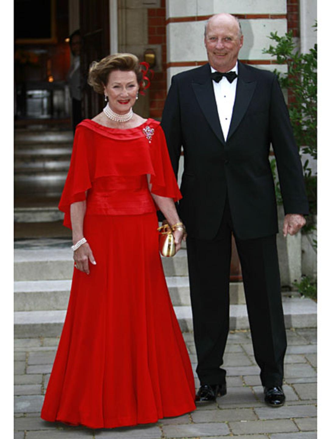 Etter vielsen deltar Kong Harald og Dronning Sonja ved en mottakelse som Dronning Elizabeth og Hertugen av Edinburgh holder for det nygifte paret på Buckingham Palace.
