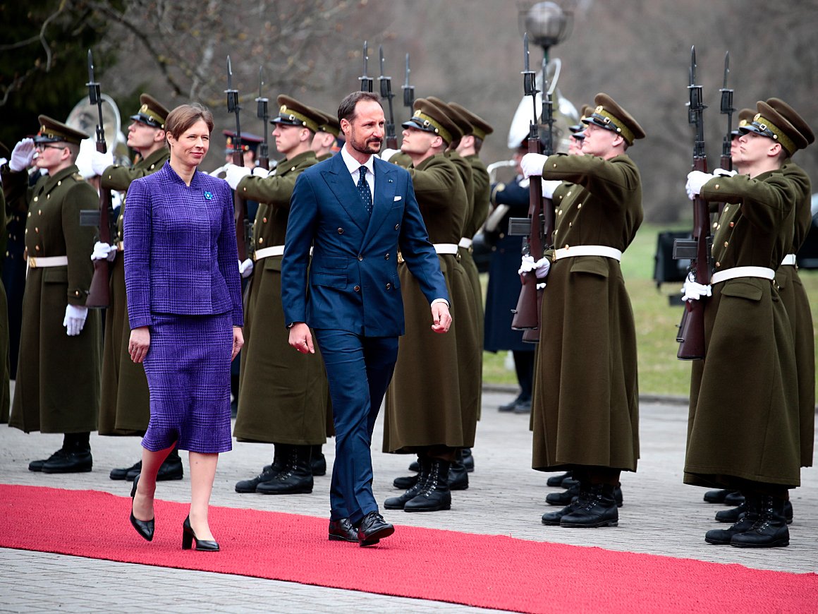 Vel framme i Estlands hovedstad Tallinn, ble Kronprinsparet ønsket velkommen av H.E. President Kersti Kaljulaid med en høytidelig velkomstseremoni utenfor presidentpalasset Kadriorg. De to landenes nasjonalsanger ble spilt, før Kronprins Haakon og President Kaljulaid inspiserte den estiske æresgarden.