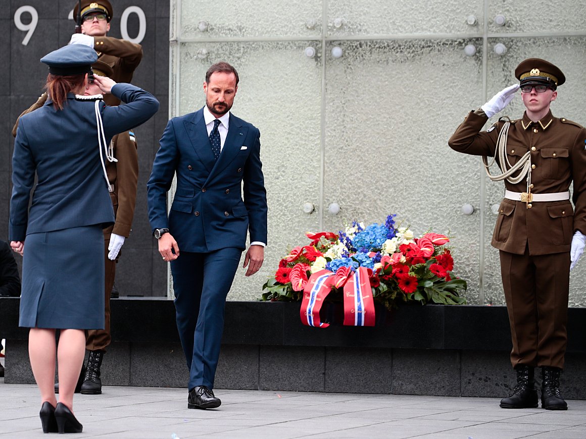 Kronprins Haakon la ned krans ved monumentet i ettermiddag. Det var en høytidelig seremoni der både den norske og den estiske nasjonalsangen ble spilt.